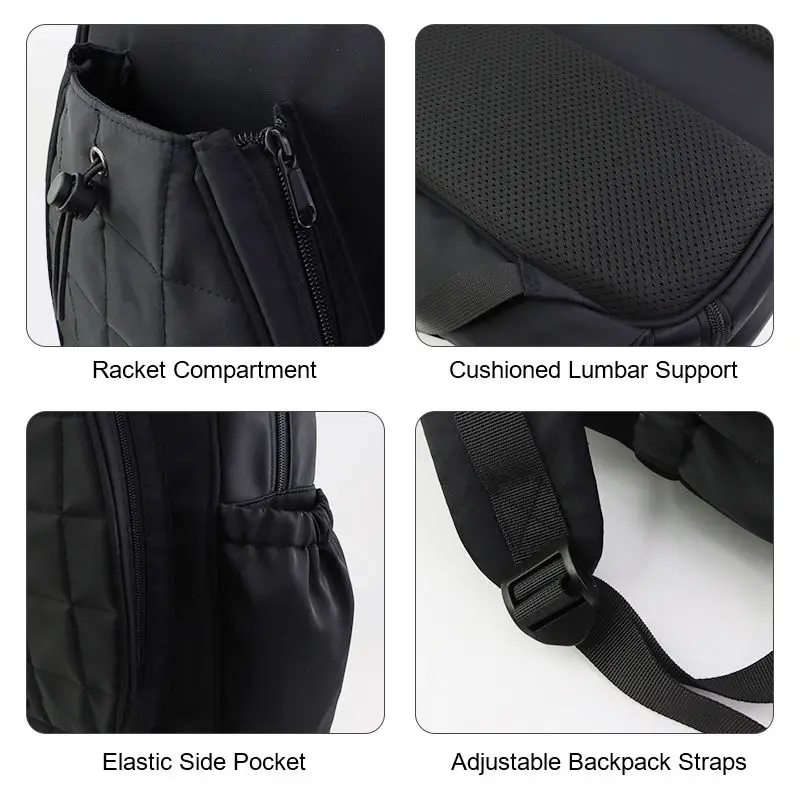 Custom Large Outdoor Sports Black Nylon Pickleball Padel Bag Tennis Racket Backpack With Shoe Compartment