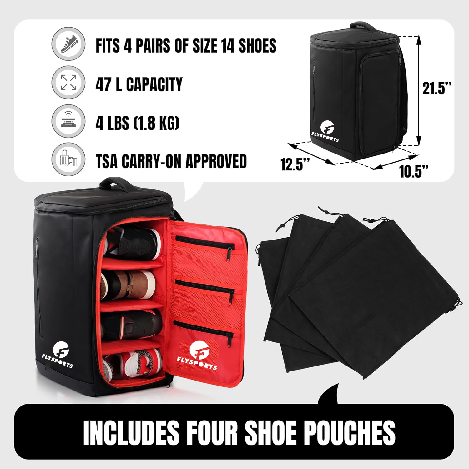 Premium Sneaker Travel Training Fitness Gym Sport Duffel Bag Waterproof Mens Overnight Bag Backpack with 3 Adjustable Dividers