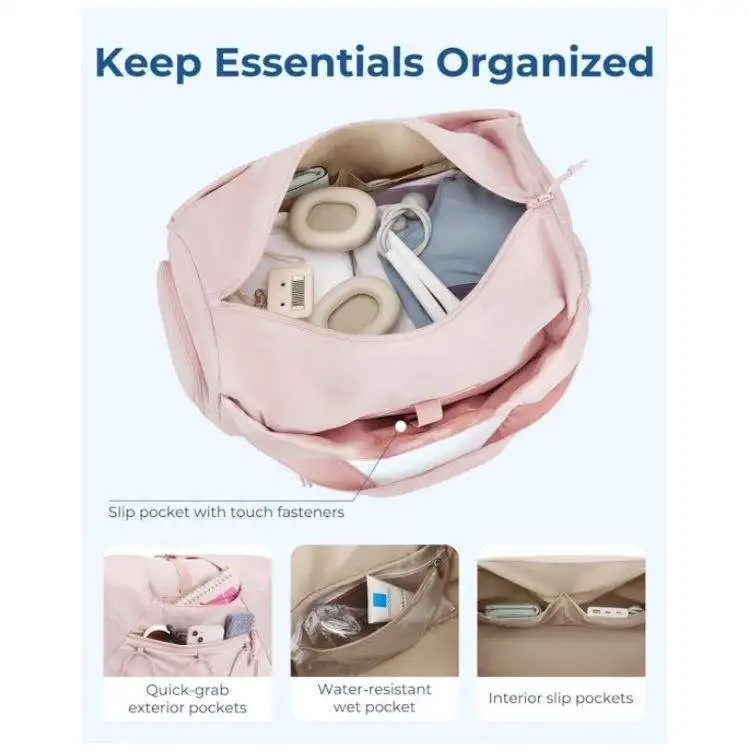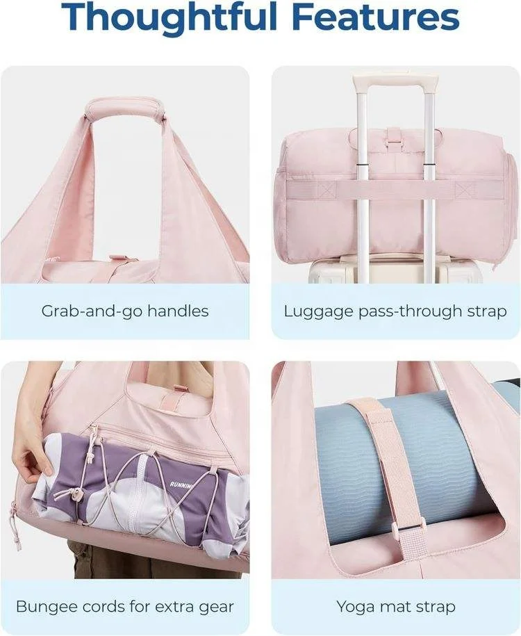 Lightweight Tote Yoga Bag with Shoe Pocket for Women Multi-function Travel Bag for Weekender With Wet Pocket and Bottle Pocket