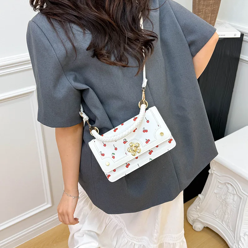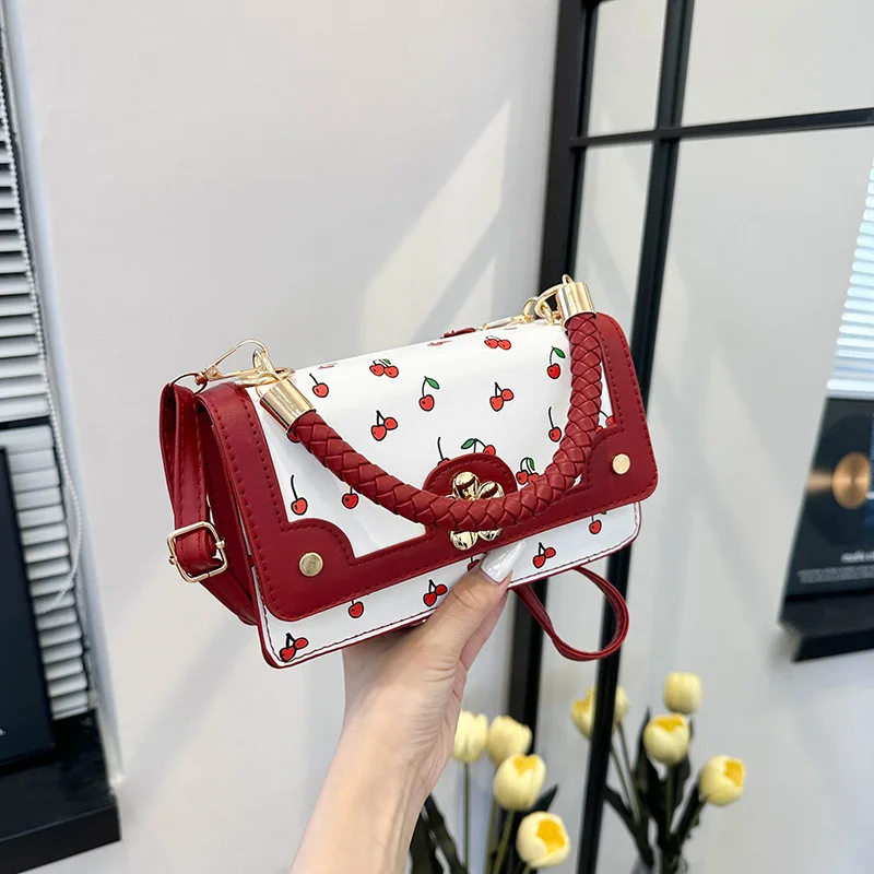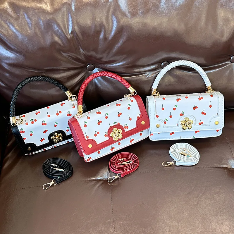 custom logo Cute Cherry Small Square Ladies Shoulder Messenger Bag Fashion PU Zip Portable Single Strap Spring/Summer/Autumn/Winter