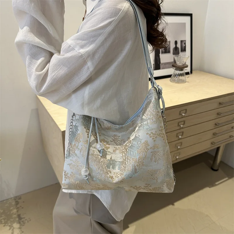 custom logo Artistic and Chinese-style Embroidered Large-capacity Bag New Summer Collection Versatile Shoulder Bag Multi-purpose Textured