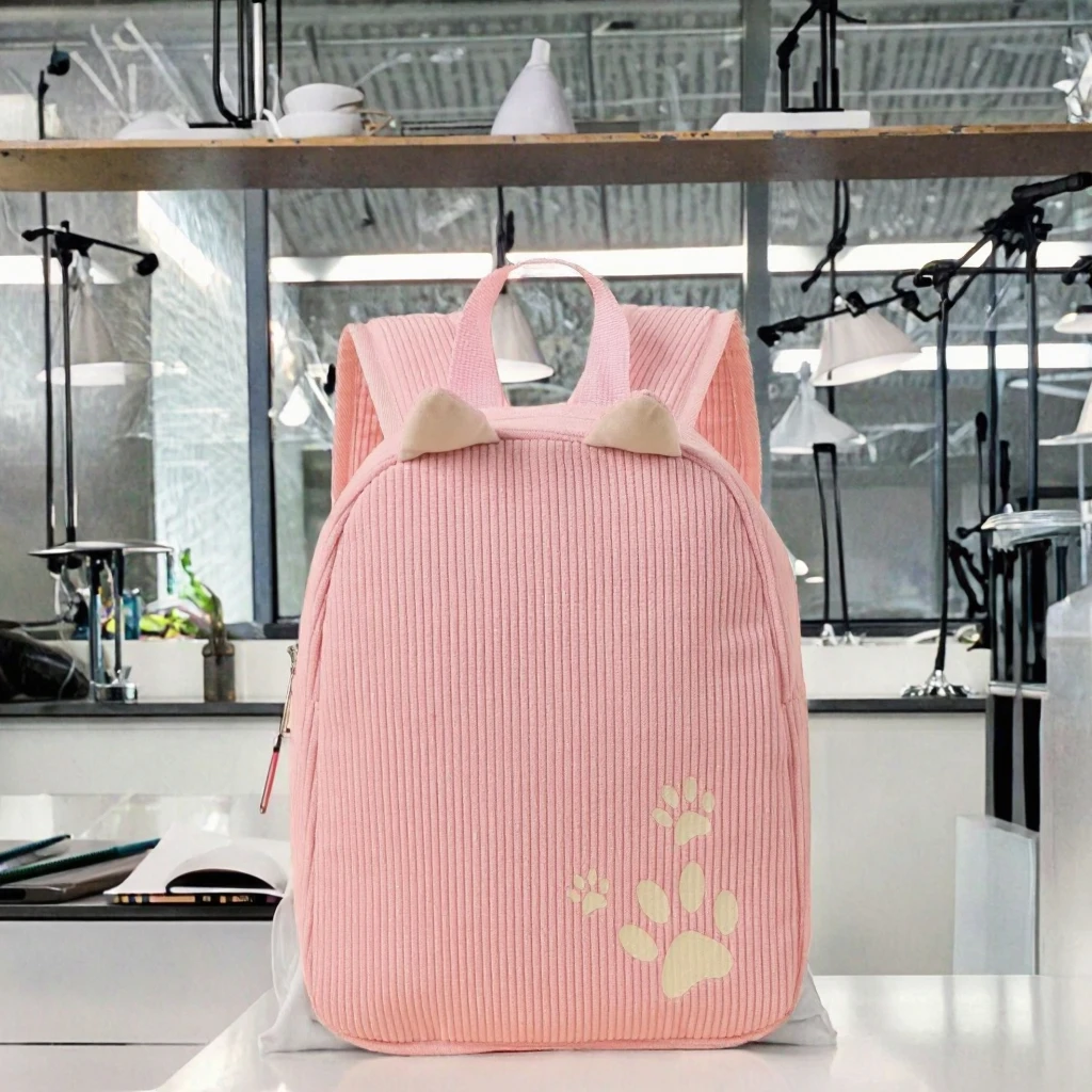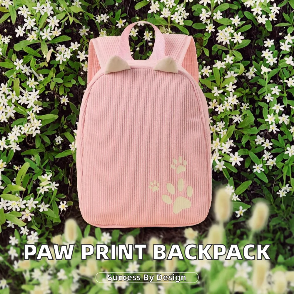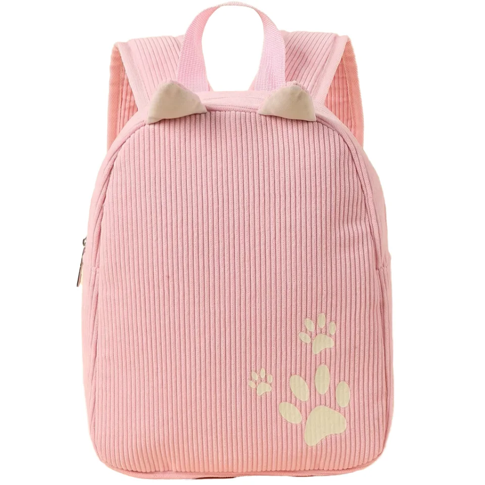 custom logo Hot-Selling Waterproof Dog Paw Print Cartoon Pattern Unisex Kindergarten School Backpack with Zipper Closure Corduroy Material