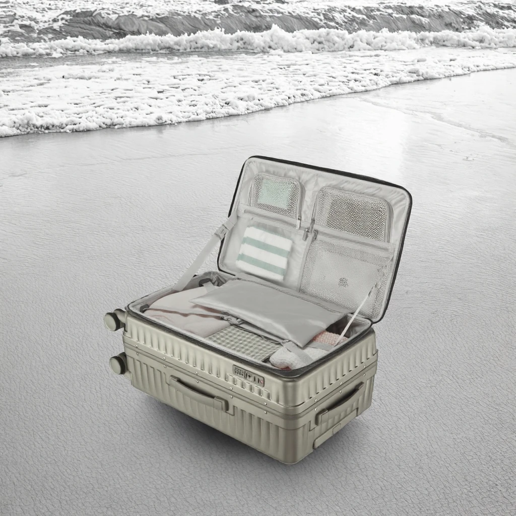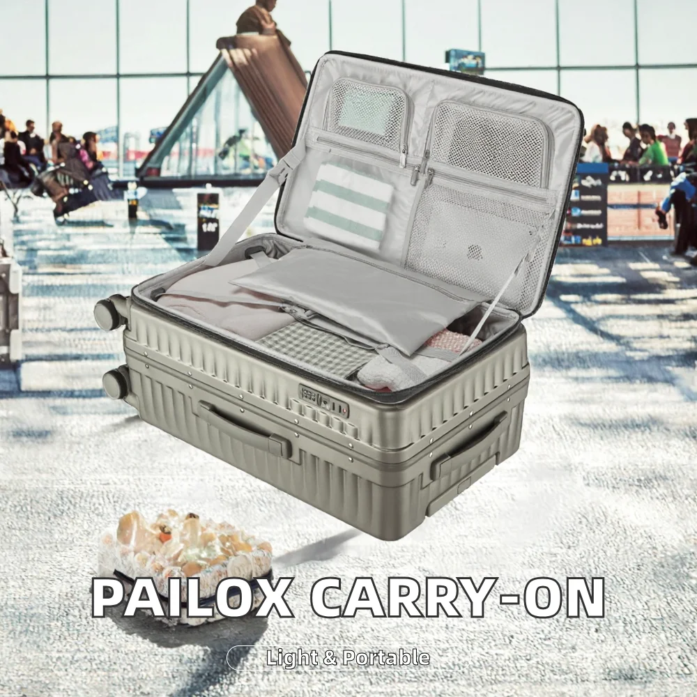custom logo Pailox Customizable Spinner PC Waterproof Cabin Luggage Multi-Functional Front Open Trolley Vacuum-Compression Feature