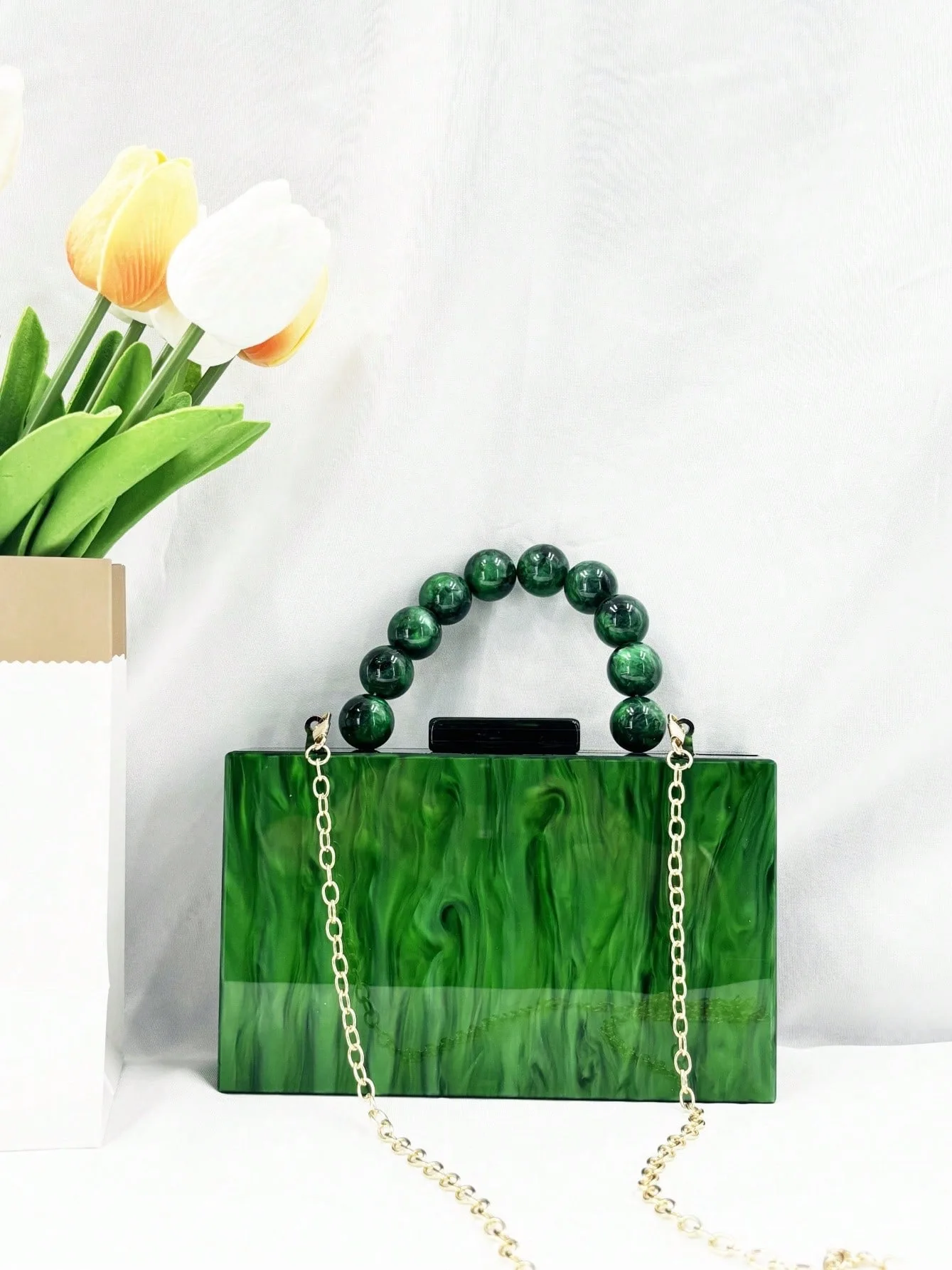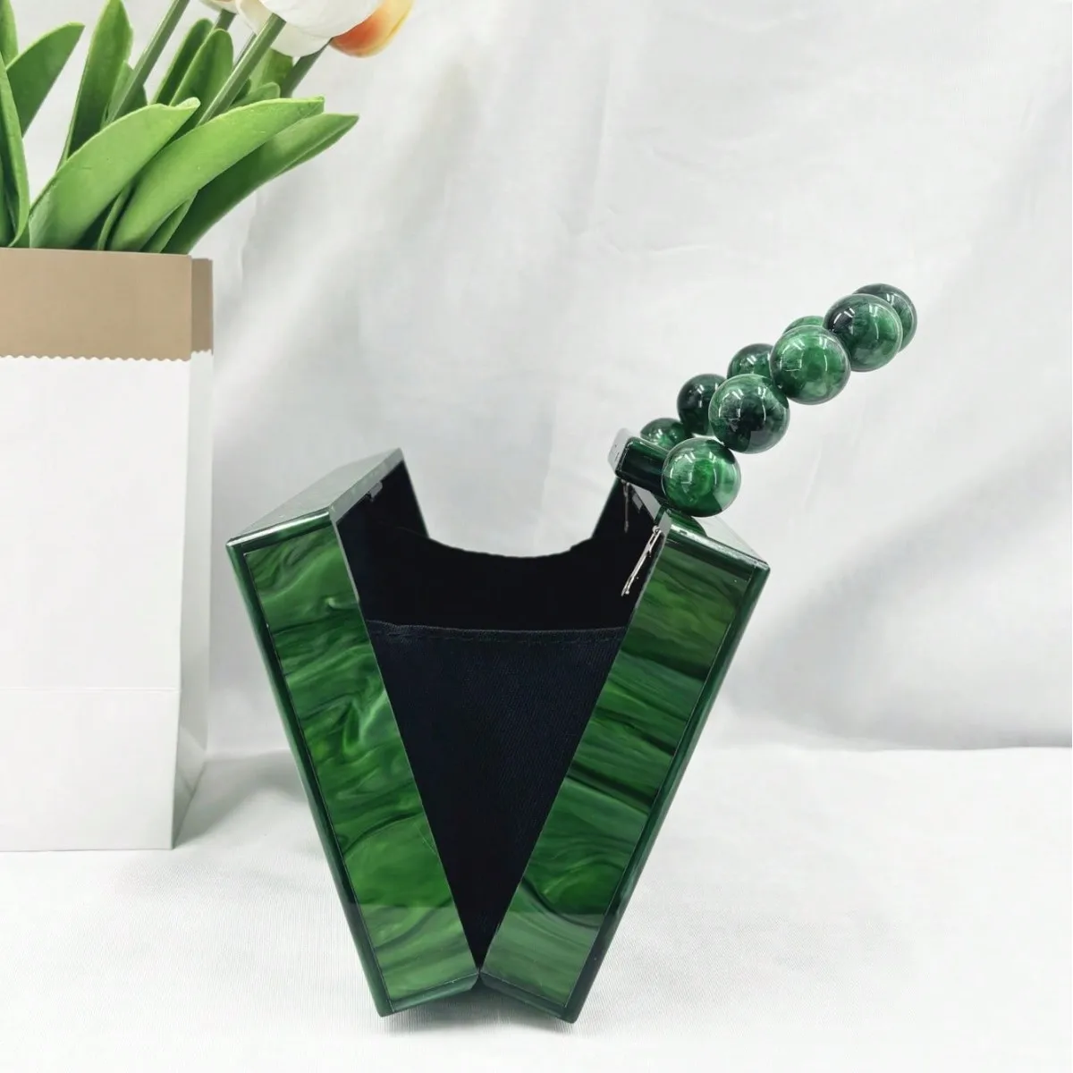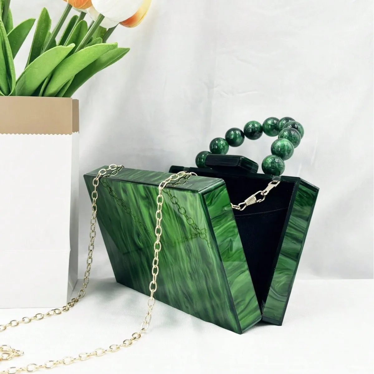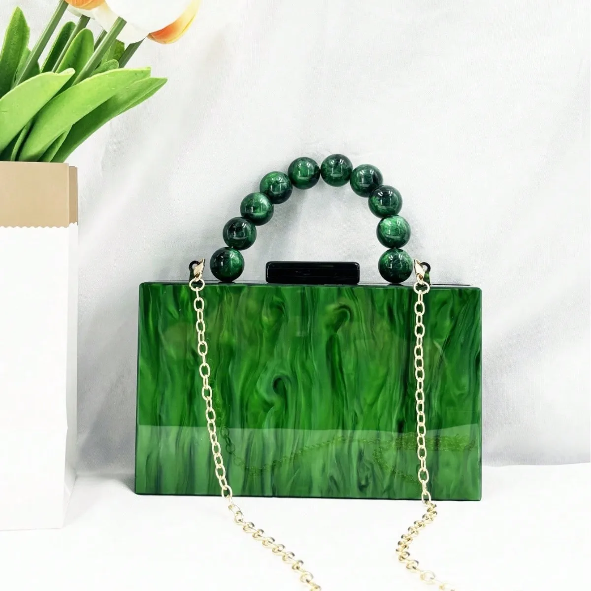 custom logo High Quality Emerald Green Ladies Evening Party Resin Stone Pattern Clutch Bag with Chains