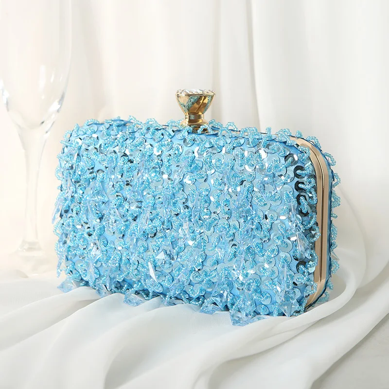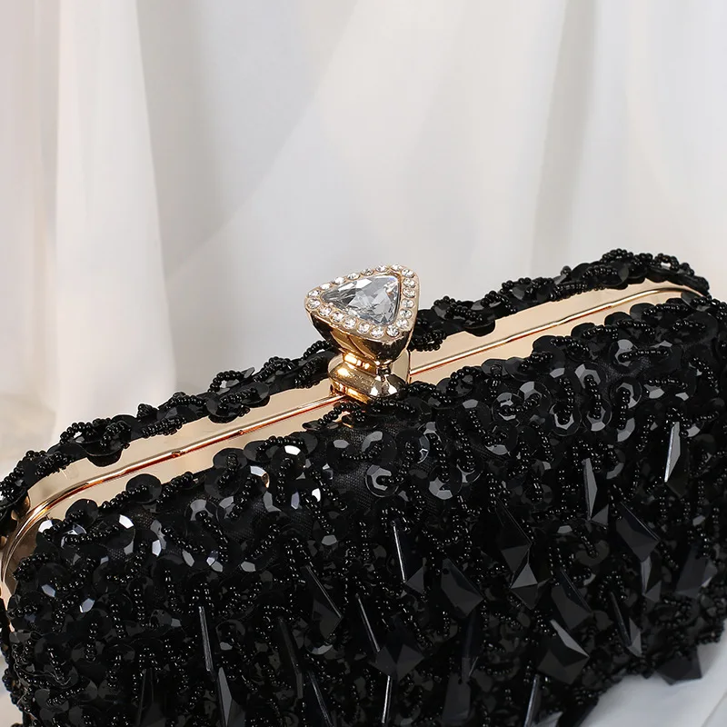 custom logo New Fashionable All-Purpose Wedding Party Evening Clutch Handbag Chains Rhinestone Magnetic Closure Polyester Lining Chain