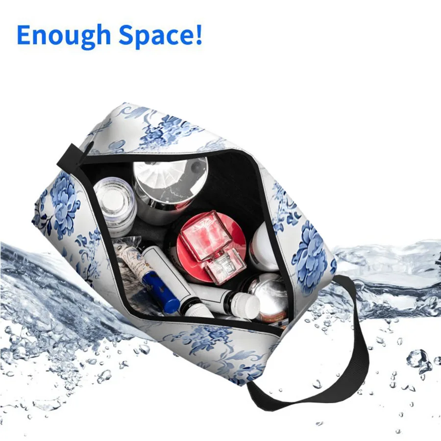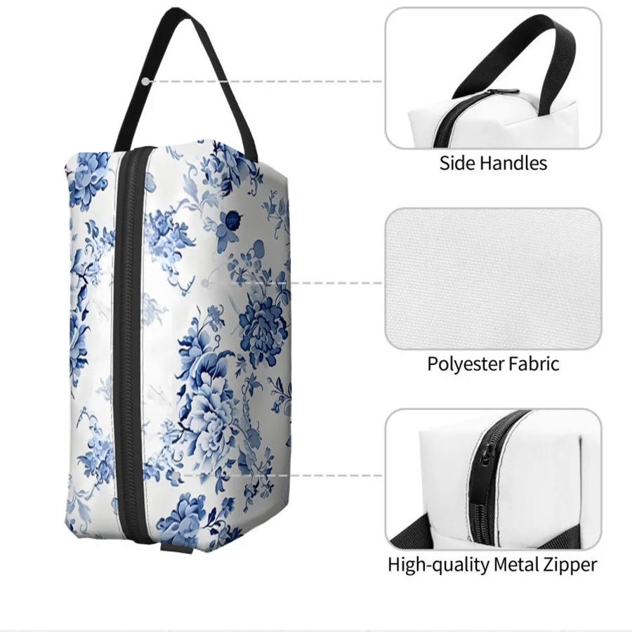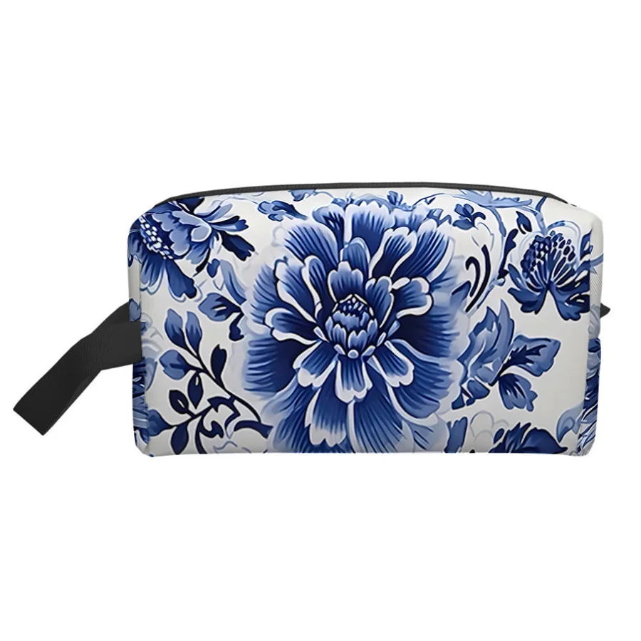 custom logo New Waterproof Nylon Cartoon Pattern Retro Blue and White Fashion Zipper Bag