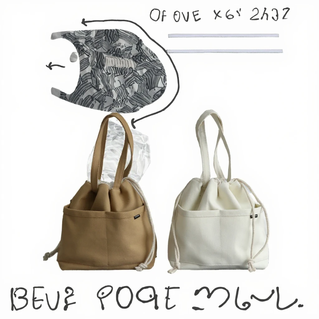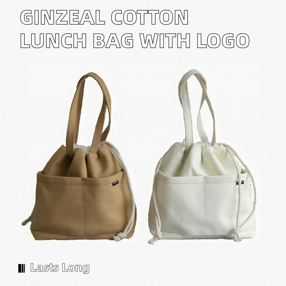 custom logo Ginzeal Portable New Style Ins Fashionable Simple Cotton Lunch Bag Zipper Closure Bucket Canvas Tote Bags Custom Printed Logo