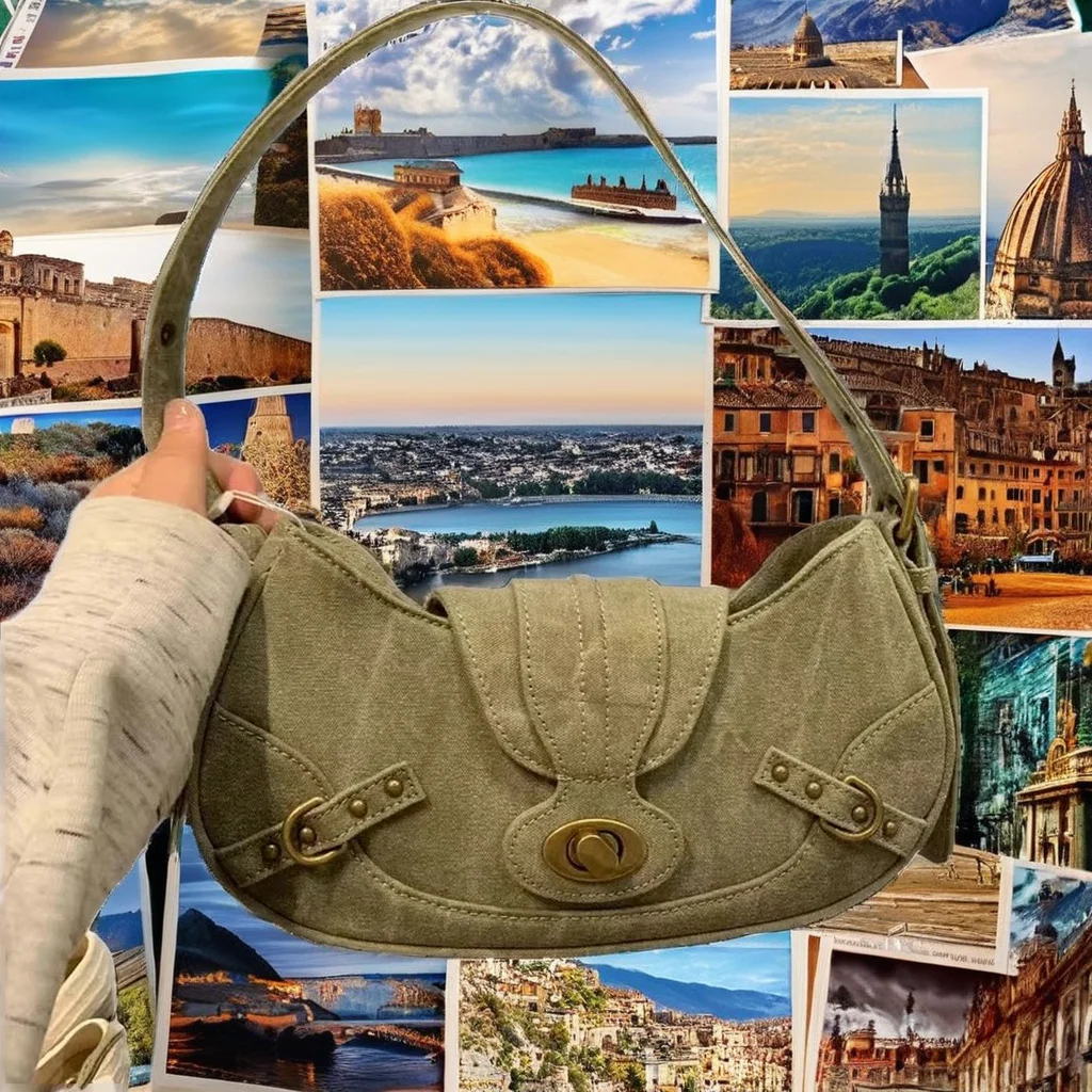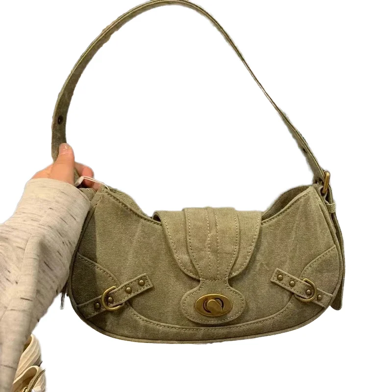 custom logo Wholesale Y2K Vintage Hobo Handbag Green Street Style Underarm Bag Punk Biker Design Zipper Closure Portable Features Polyester