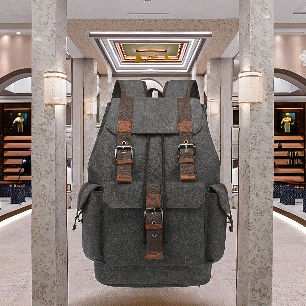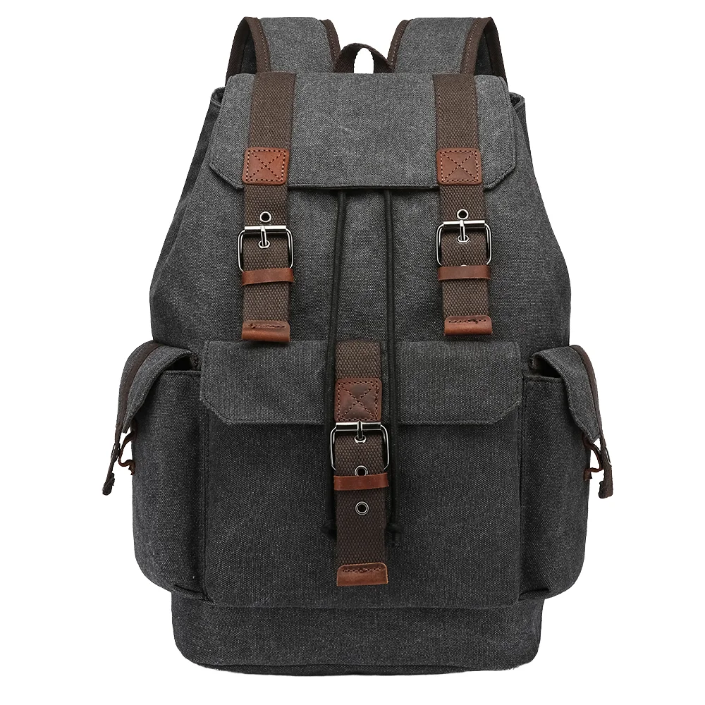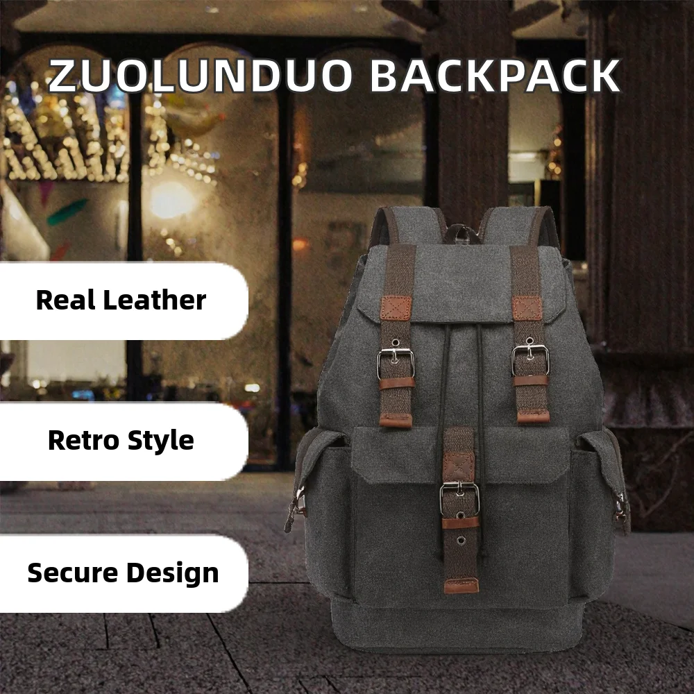 custom logo For ZUOLUNDUO Men's Luxury Vintage Fashion Style Canvas Backpack Fast Shipping Genuine Leather Anti-theft Zipper & String