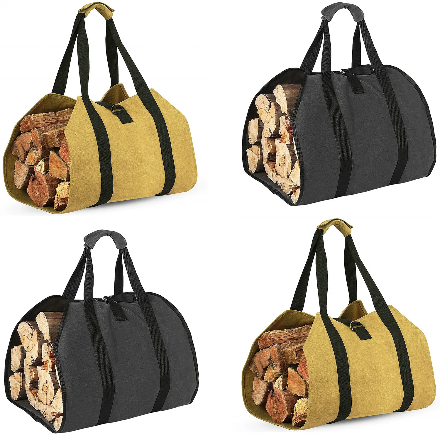 custom logo Modern Sleek Simple Firewood Bag Stand-Up Canvas with Large Capacity Portable Durable Log Tote Wood Storage Buckle Closure