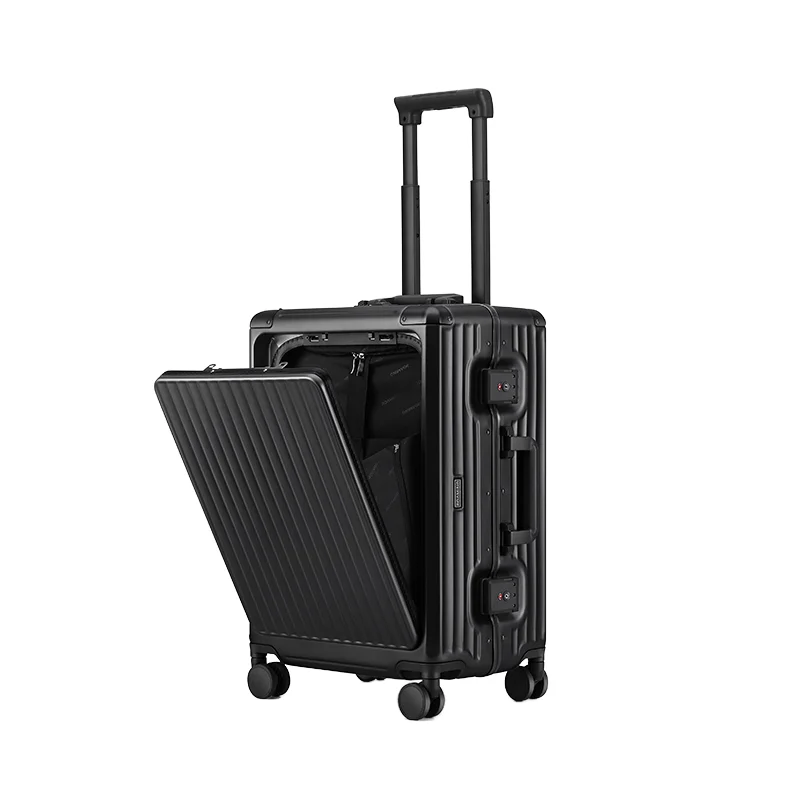 custom logo High-end Fashionable Front Opening Aluminum Frame Strong Durable 4 Spinner Wheels Business Luggage Reinforced Large Capacity