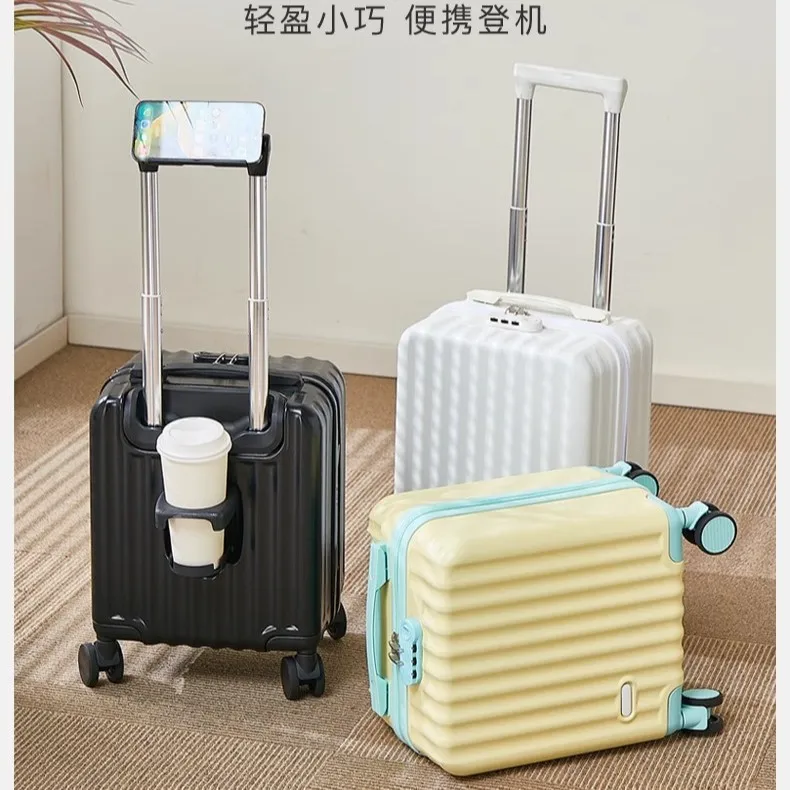 custom logo Modern 14 Inch Spinner Boarding Suitcase Light Weight Lock Fashionable Unisex Trolley Luggage Cup Phone Holders Travel