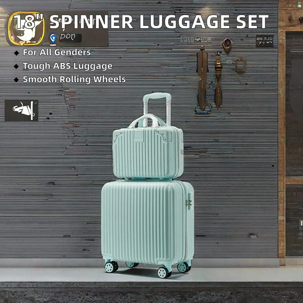 custom logo Custom Logo 2-Piece Hardside Travel Luggage Set 18-Inch Cabin Size Spinner Wheels ABS Material Suitcase for Travelling