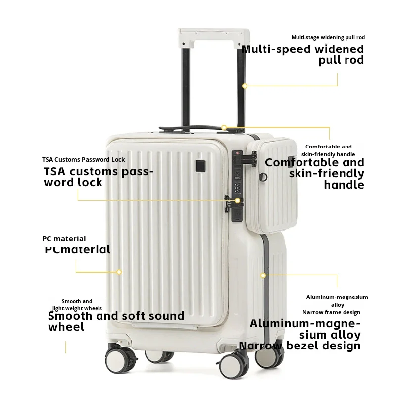 custom logo Luggage Trolley Case 20 Inch Boarding Travel Case Side Open Cover PC Case USB Interface Waterproof TSA Lock Durable