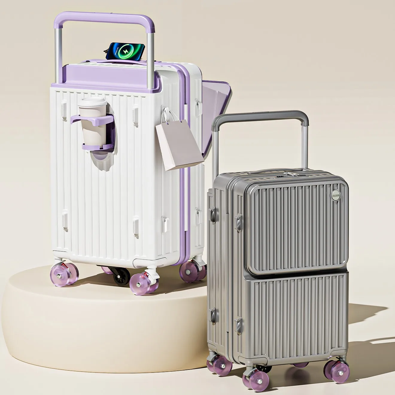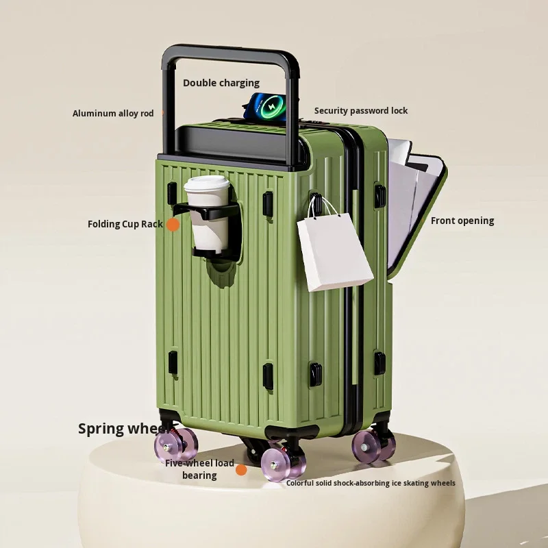 custom logo Wide Trolley Luggage New Front Opening Large Capacity Carry-On Standard Combination Lock PC Travel Suitcase Durable