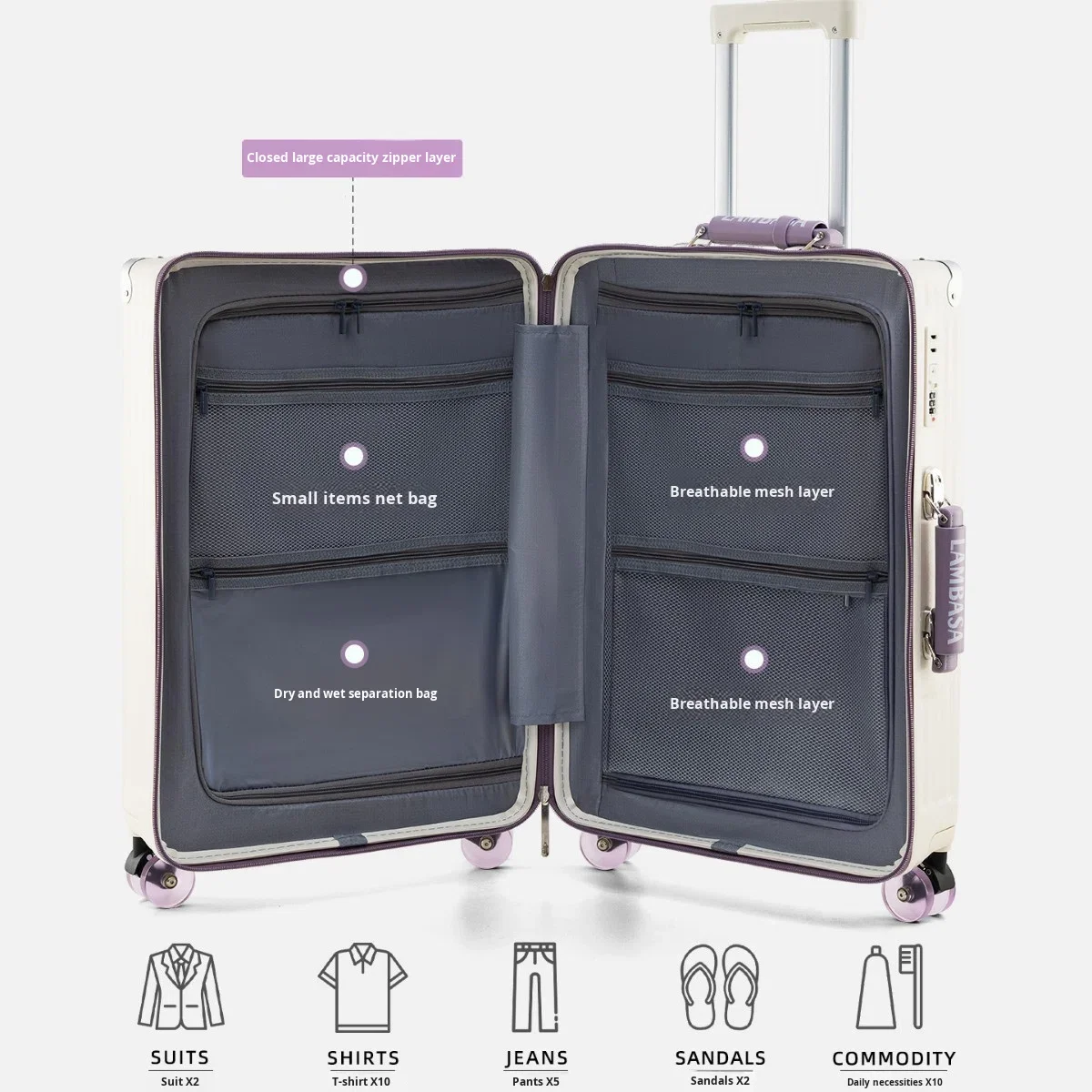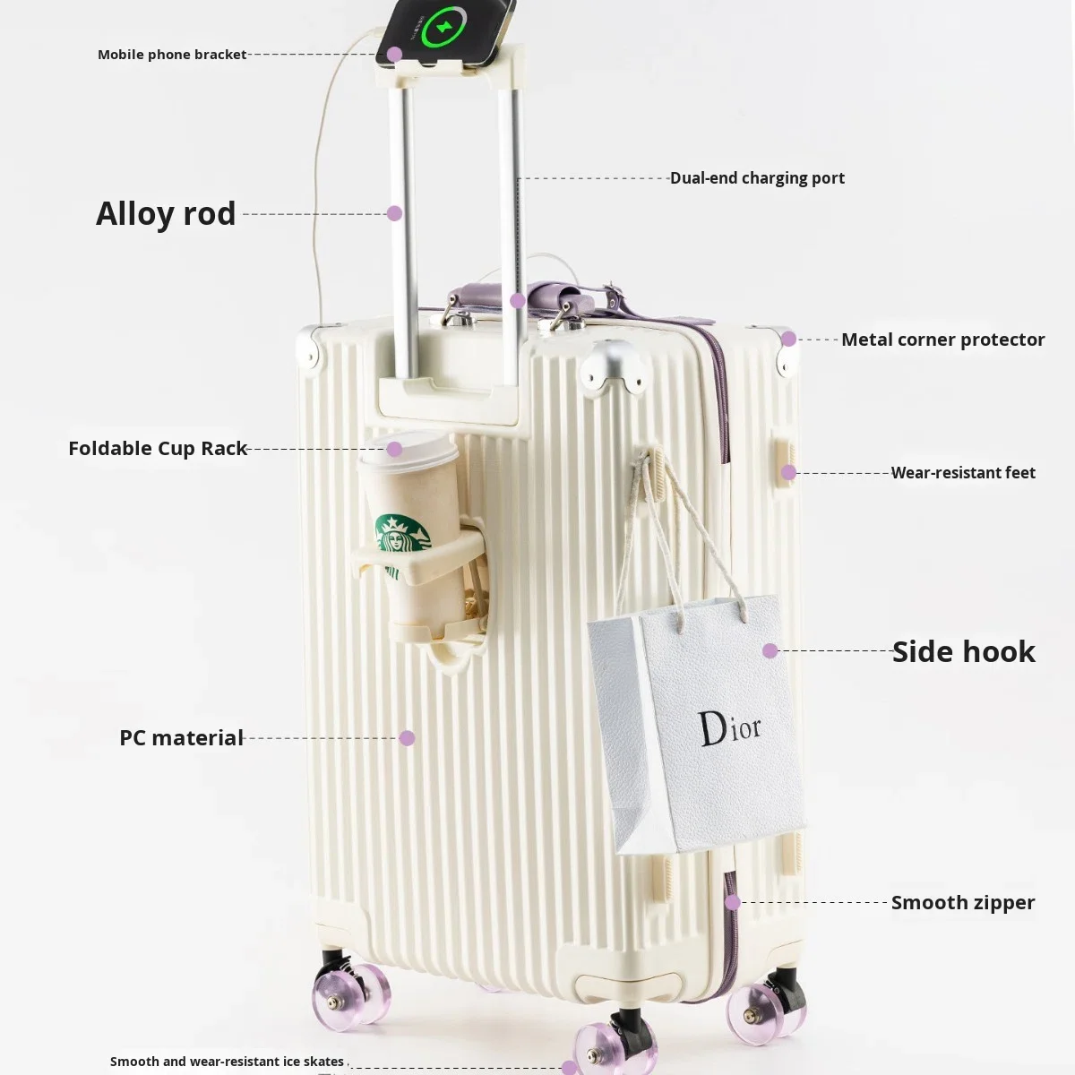 custom logo Women's Luggage Suitcase 2026 New Model 20/24/28inch Neoprene Boarding Case USB Interface Mobile Phone Holder Lock High