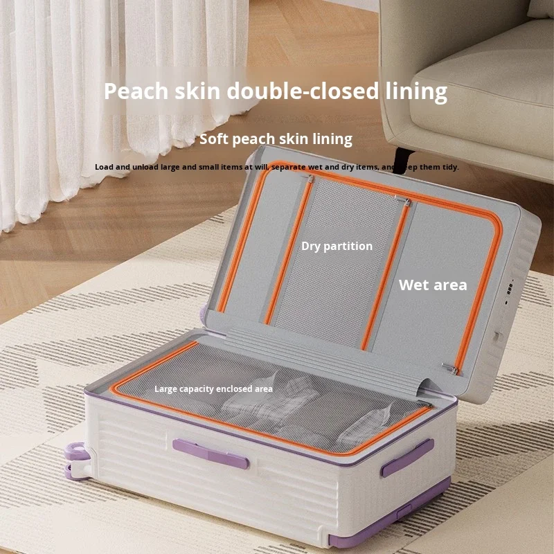custom logo Three-Seven Points Wide ABS+PC Waterproof Rolling Luggage Large Capacity Anti-Protective Front Opening Dry/Wet Separation Lock