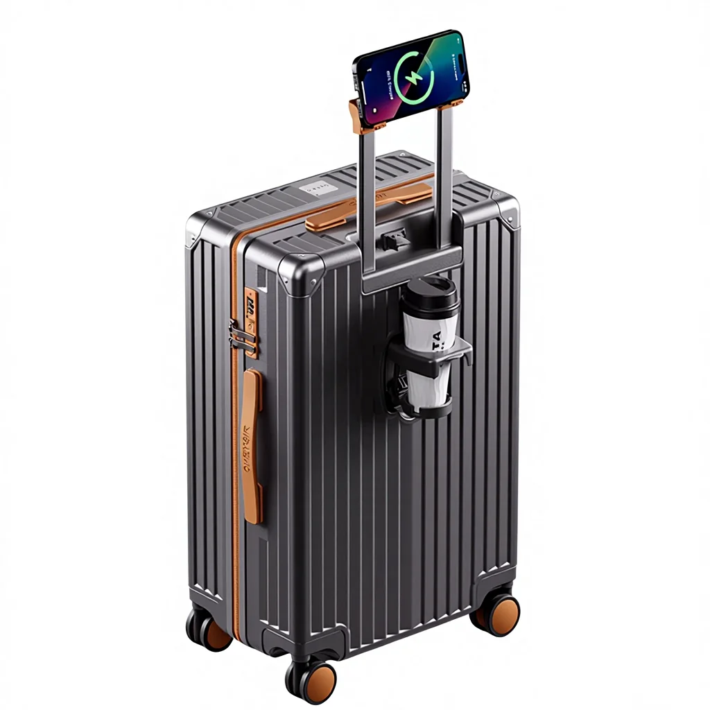 custom logo Luggage 24/20inch Silent Spinner Wheels TSA Lock Neoprene Zipper Cup Holder USB Interface Breathable Waterproof Super
