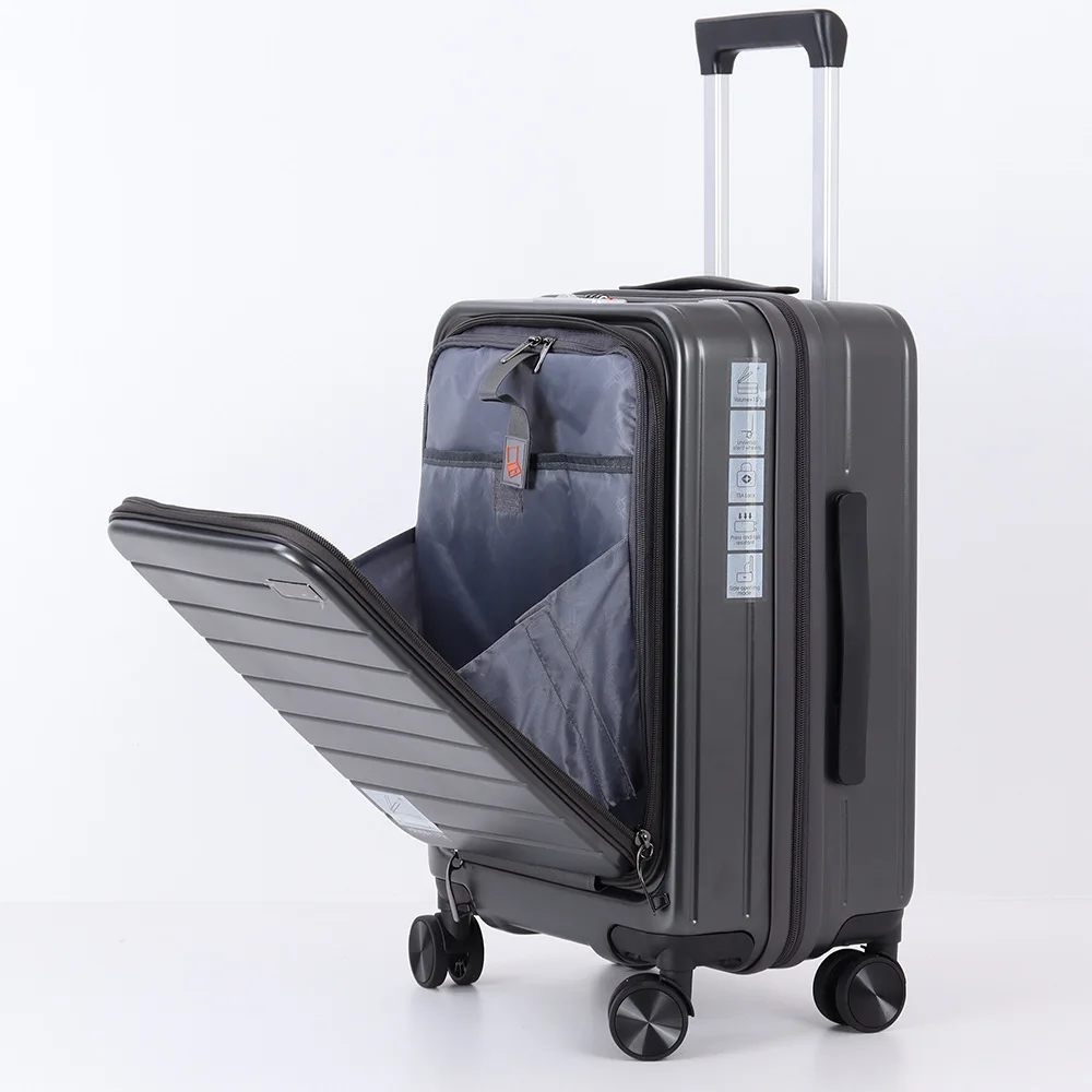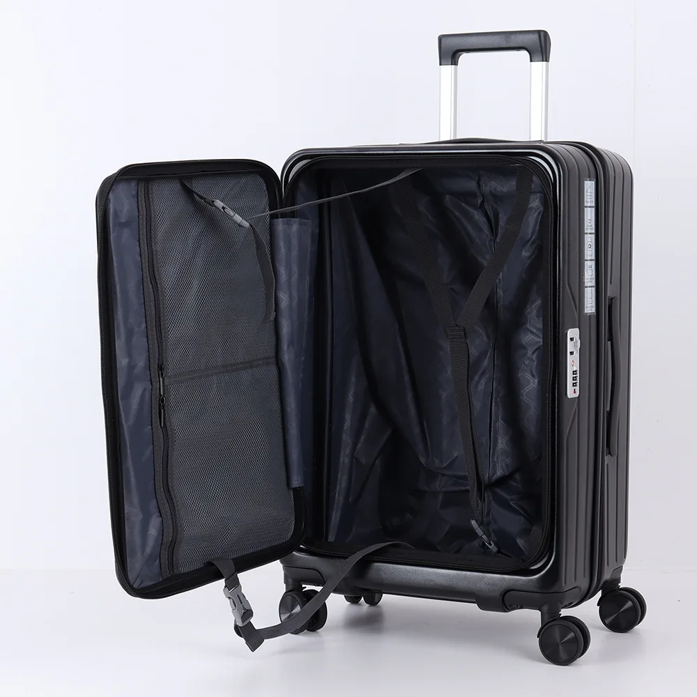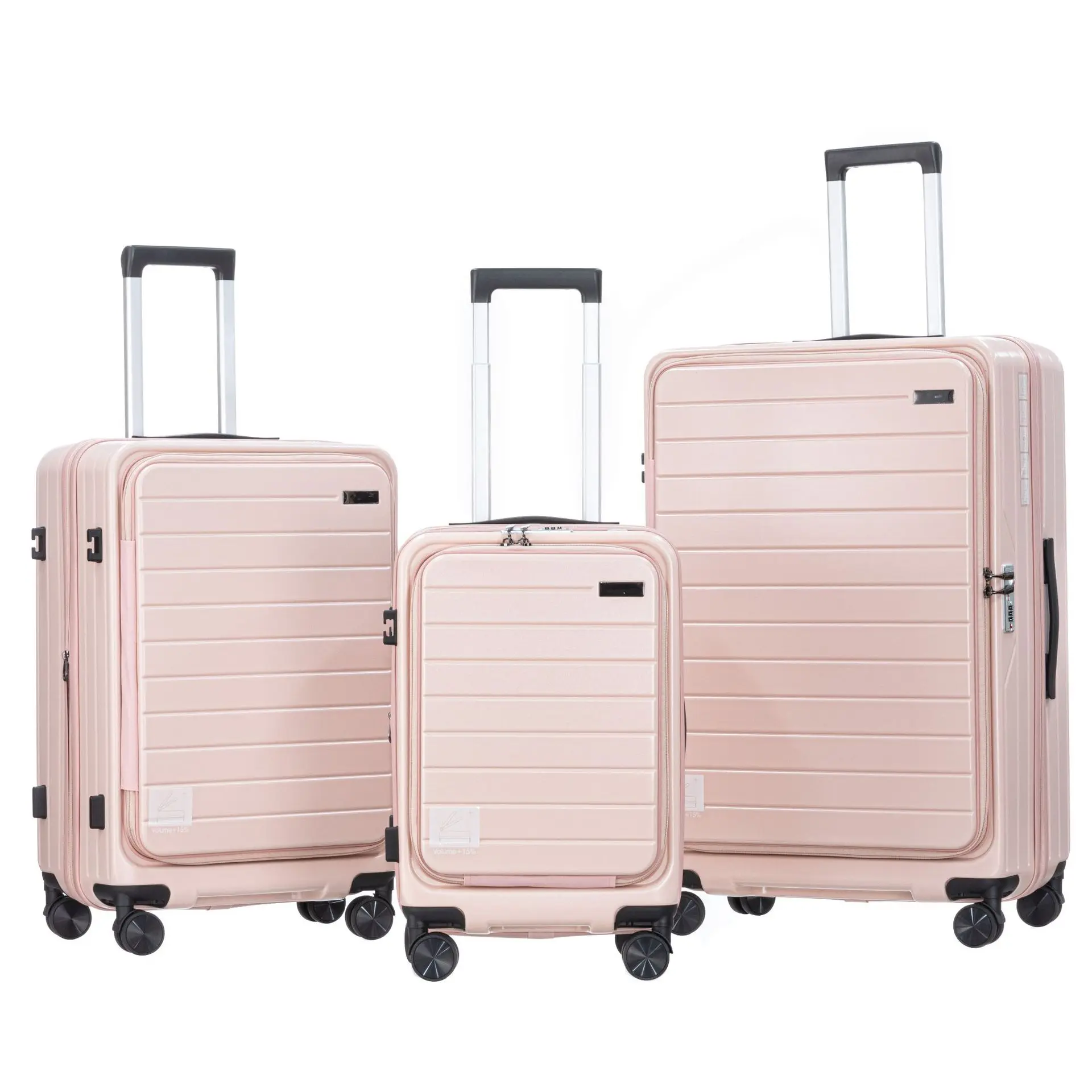 custom logo Sports Style Front-Opening Travel Suitcase Set Large Capacity Three-Piece Luggage Universal Wheels Customs Lock Polyester