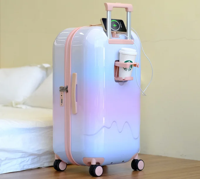 Cute Female Suitcase with High Level of Appearance 20-inch Carry-on Suitcase Lightweight Suitcase Gradient Color Custom logo