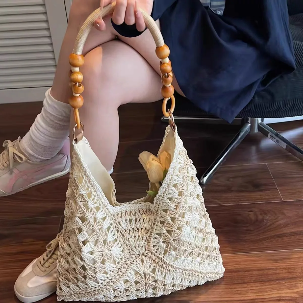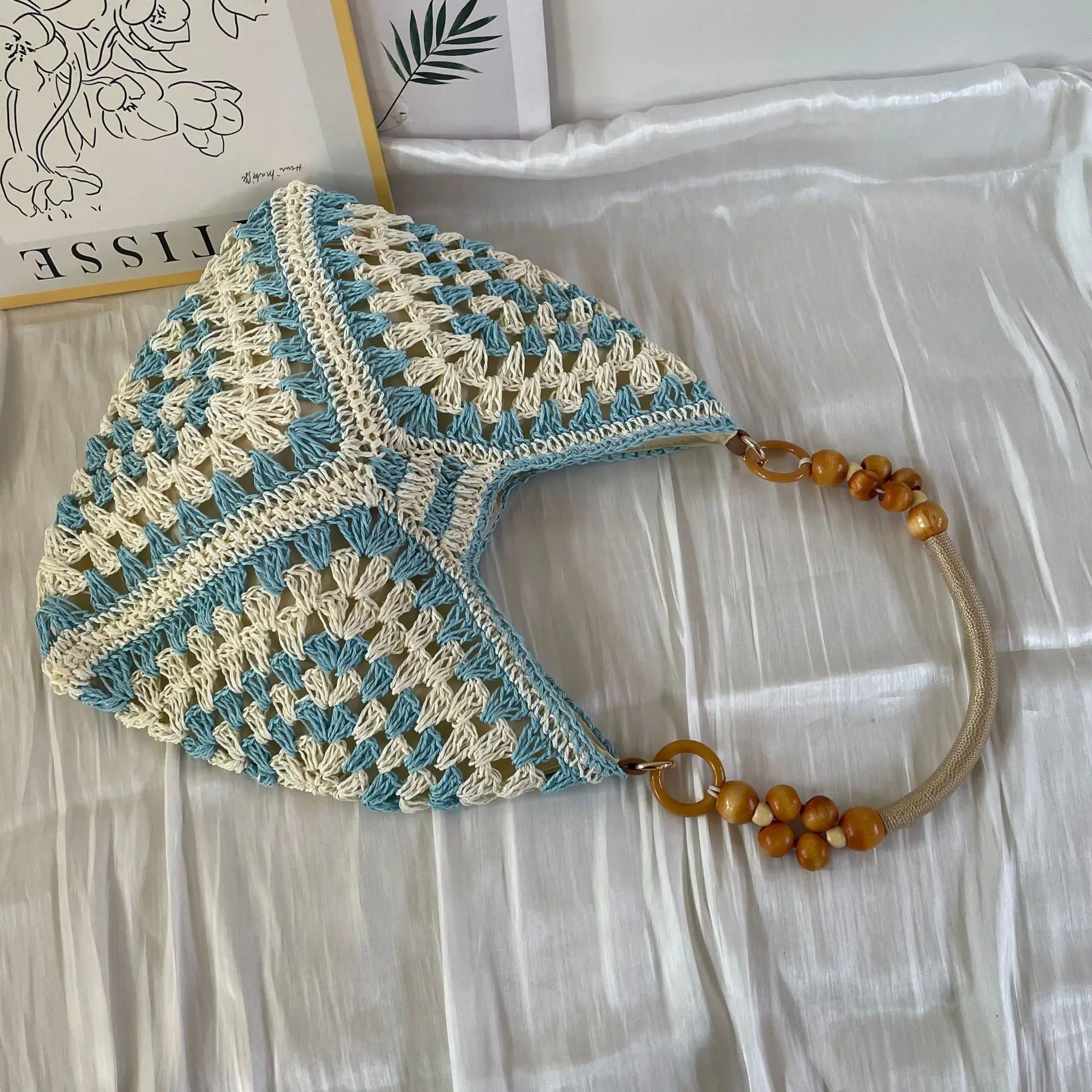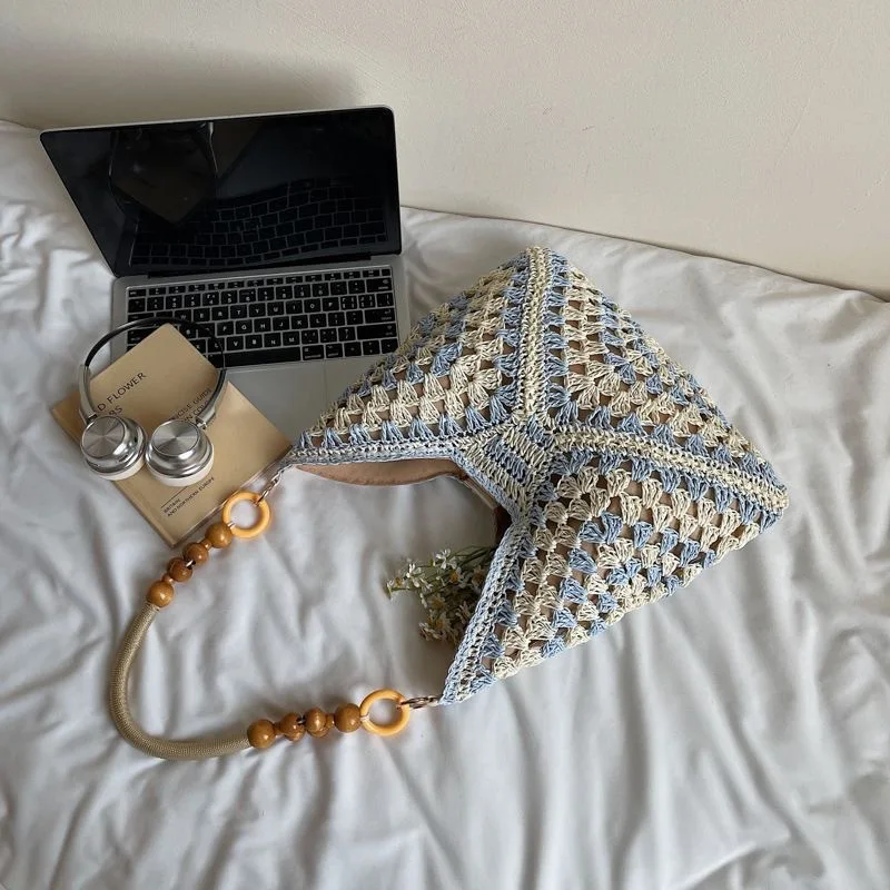 New Style Weaving Hand-woven Bag Beach Resort Style Shoulder Bag Straw Tote Bag Custom logo