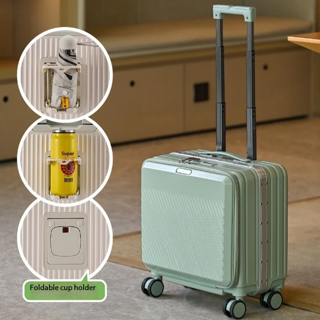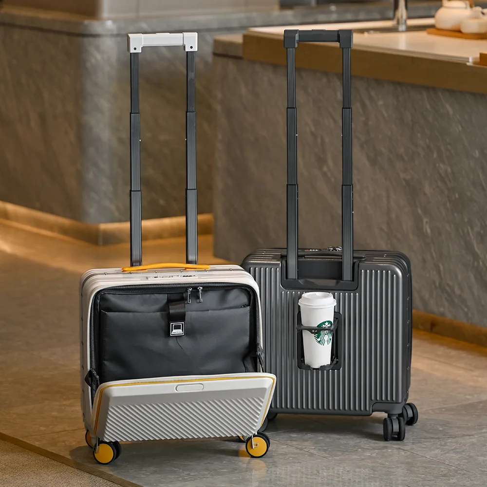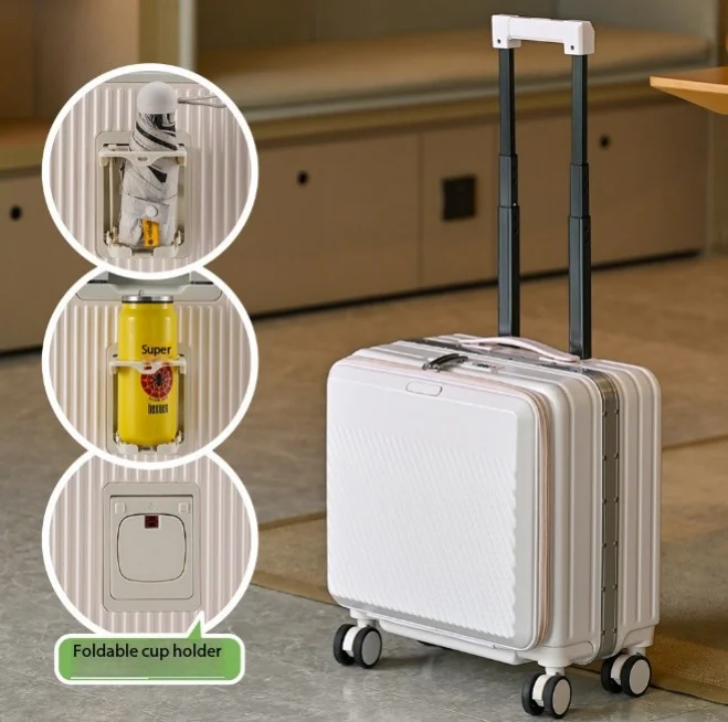 18-inch Front-opening Carry-on Suitcase with Contrasting Colors Multi-functional Trolley case Custom logo