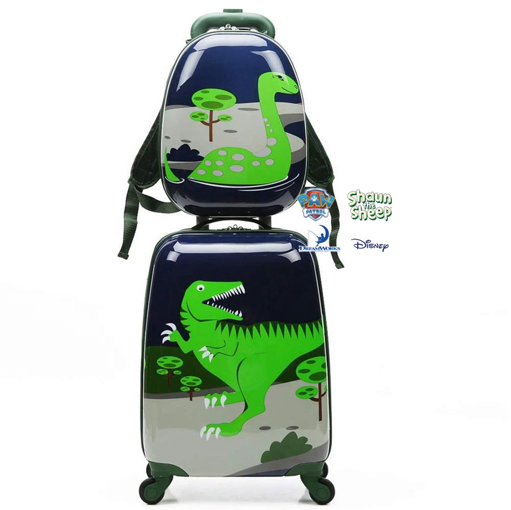 Carry on Universal Wheels Dinosaur Bag 18inch Kids Luggage and 13inch Children Spinner Kids Backpack Set