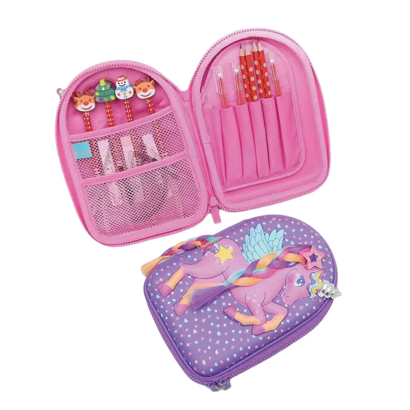 Creative Unicorn Pencil Box 3D PU Cute Cartoon Large Capacity Zipper Children Student Stationery Box Pencil Box