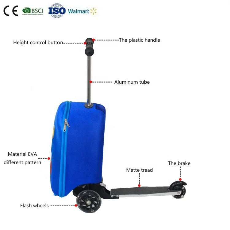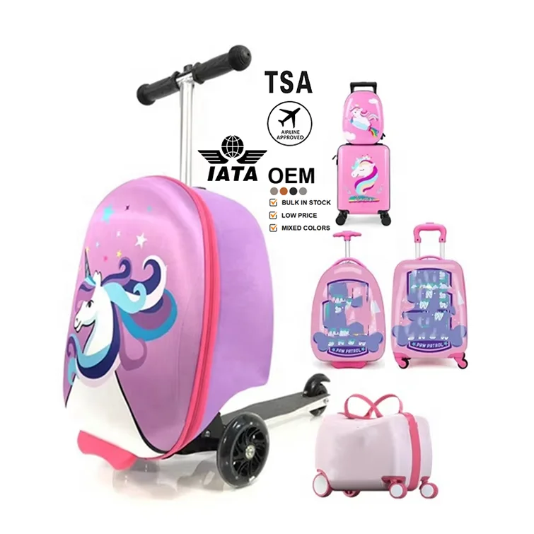 Costom Design 3D Trolley Children Luggage Scooter Airport Kids Travel Trolley Luggage with Scooter