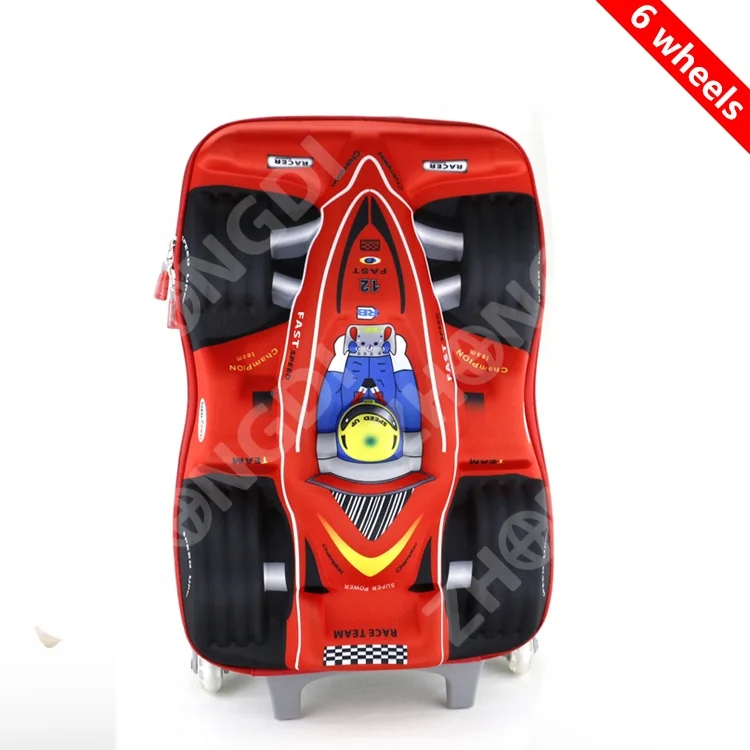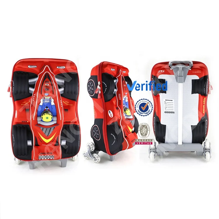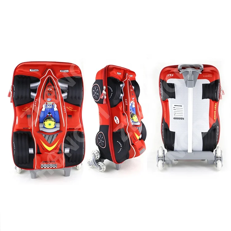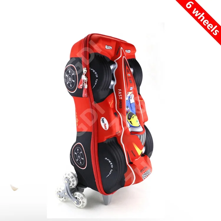 Wholesale Good Quality 16 Inch 3D Cartoon Car Shape Durable Deck EVA Luggage Wheeled Trolley Bag for Kids
