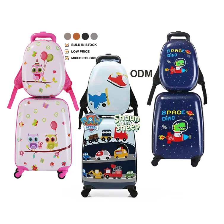 Ready to Ship Hot Sale Multiple Cute Cartoon Design in Stock Valise Enfants Children Backpack Cabin Kids Suitcase Trolley Set