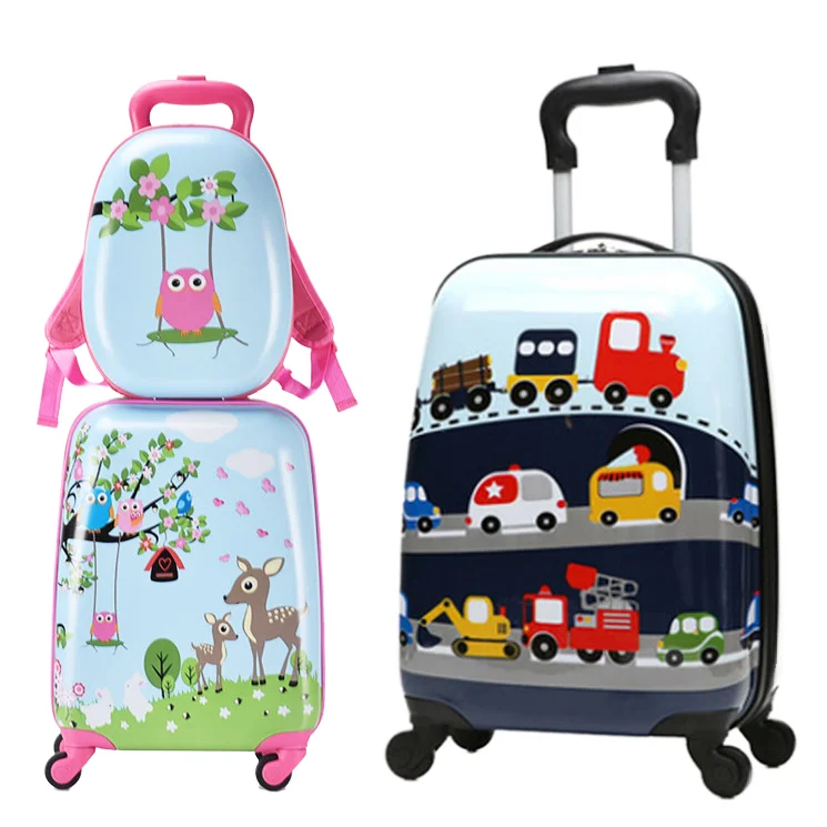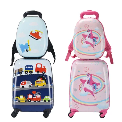 2 PC Kids Luggage 16" Carry-on Suitcase & 12" Backpack Set Children Travelling Case Lightweight Trolley Case for Boys & Girls