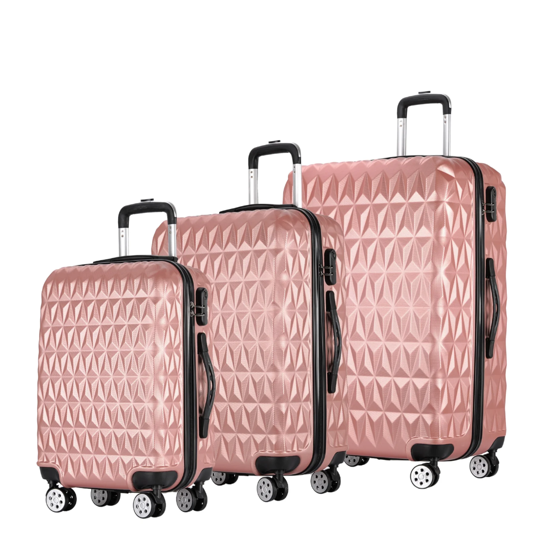 Diamond Fashionable Anti-Theft Travel Suitcase Durable 360° Spinner Lock Wheels PC Front Open Design for Business Vacation