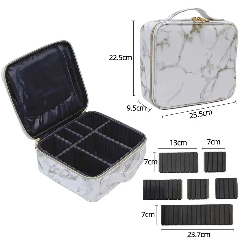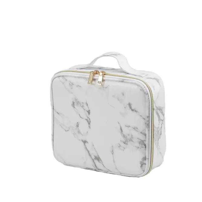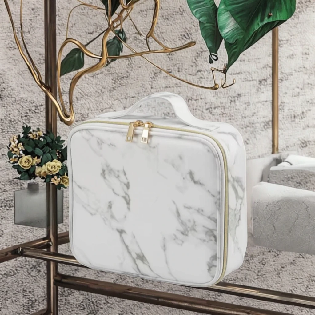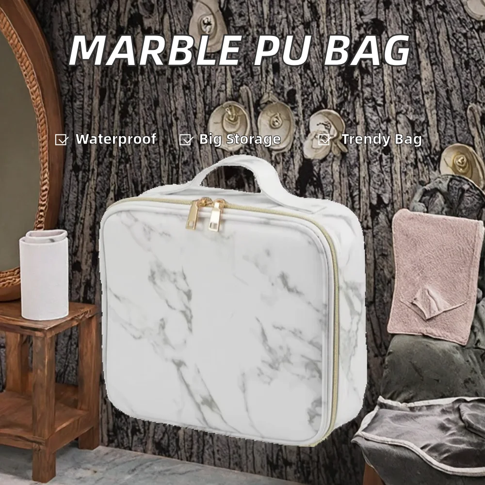 Creative Marble Pattern PU Handbag Large-Capacity Portable Travel Cosmetic Organizer Zipper Waterproof Makeup Bag Fashion Style