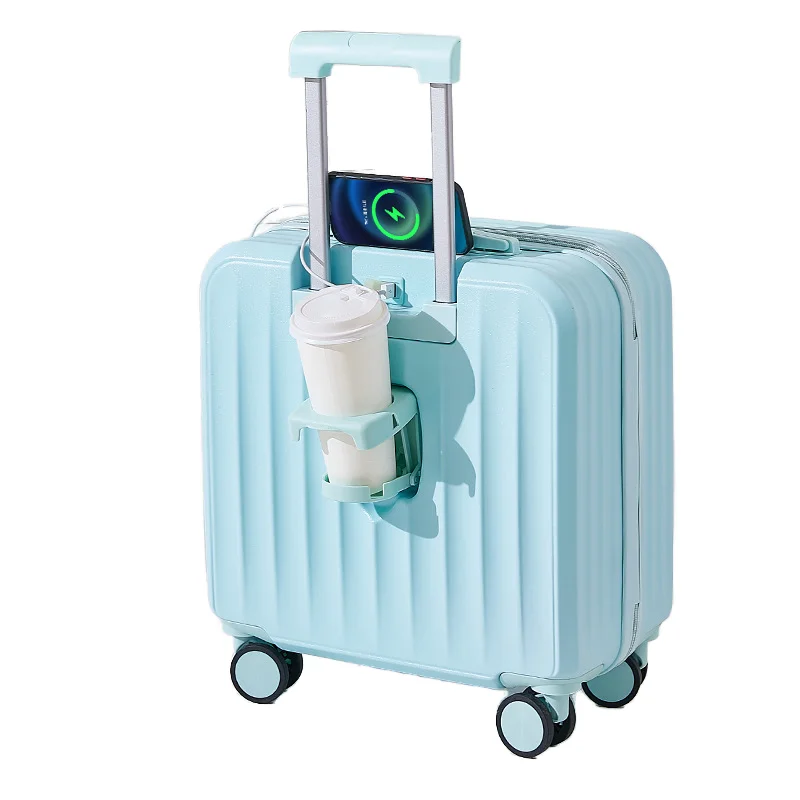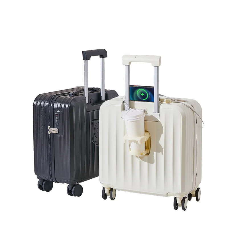 18-Inch Portable Carry-on Suitcase with Front Opening Waterproof ABS Hard Shell OEM ODM Pure Color and Pretty Design