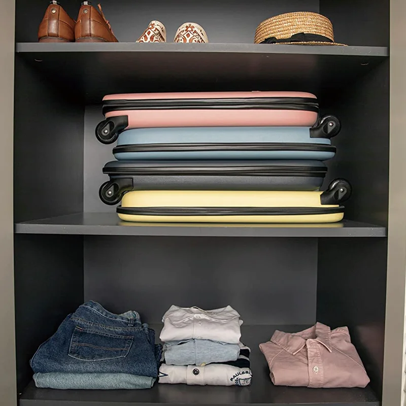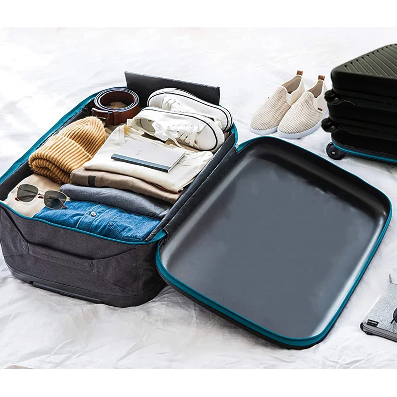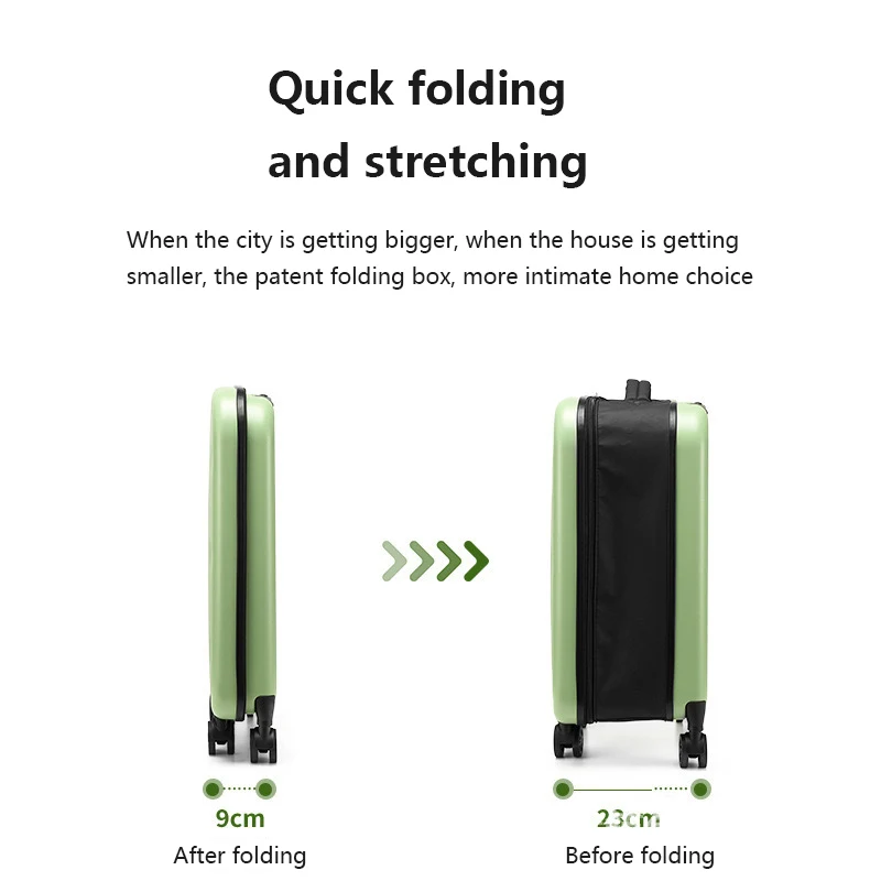 Collapsible Suitcase Carry on Luggage Scratch Water Impact Resistant Hard Shell Green Travel Suitcase Folding Trolley Case