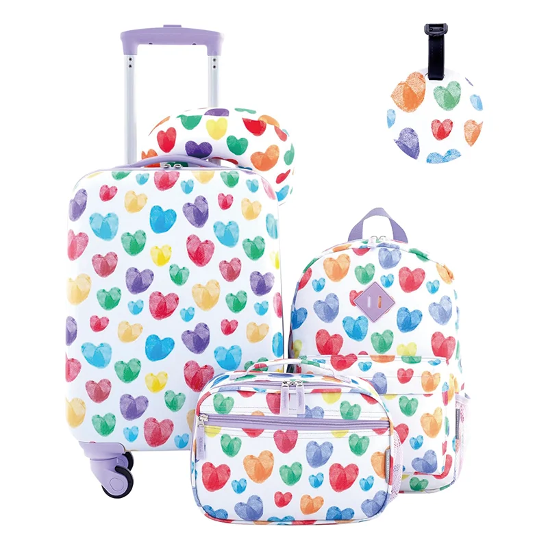 Heart Luggage for Girls 16" Kids Rolling Luggage Travel Rolling Suitcase with Wheels 5 Kids Luggage Set