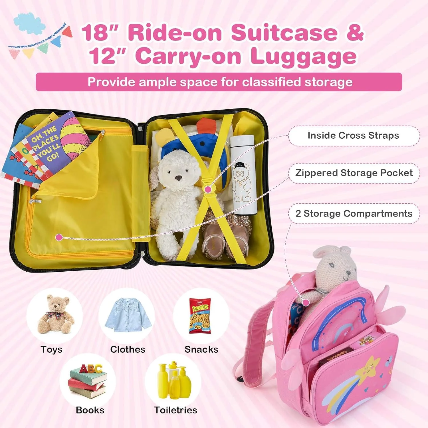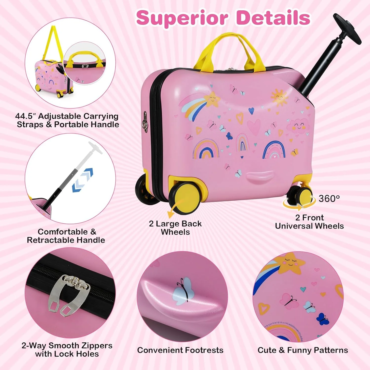 12" & 18" Children Hand Trolley Case with Wheels and Anti-Lose Rope Girls Boys Carry on Suitcase for Travel School