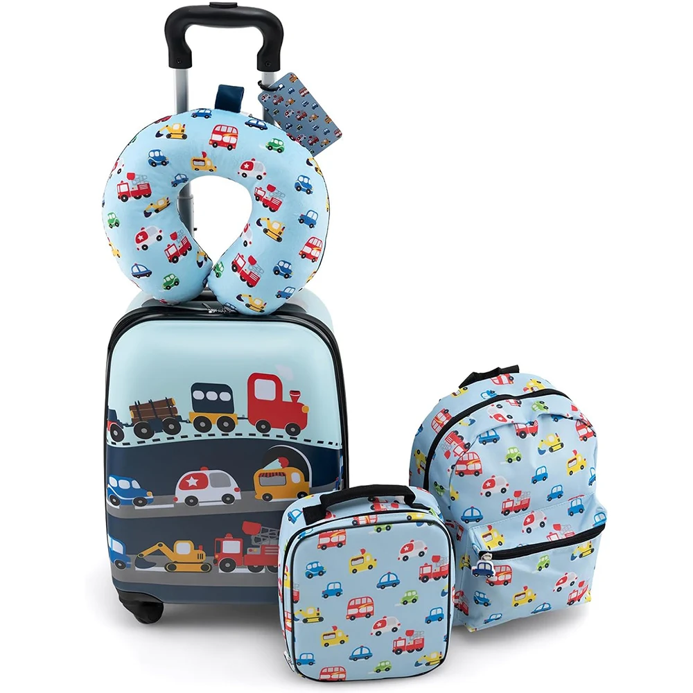 Traffic Rolling Suitcase Set Kids Luggage 16 Inch Kids Rolling Luggage Gift Kids Suitcase 5 Piece Set