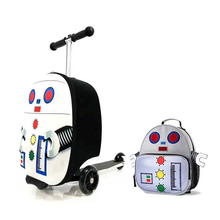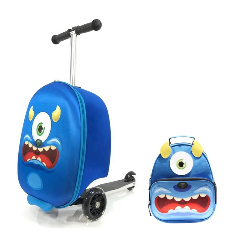 Available Three Wheel Traveling Bag Kids Hardshell Luggage Suitcase Scooter for Children EVA Steel Customized Logo 19 Inch 3.8kg