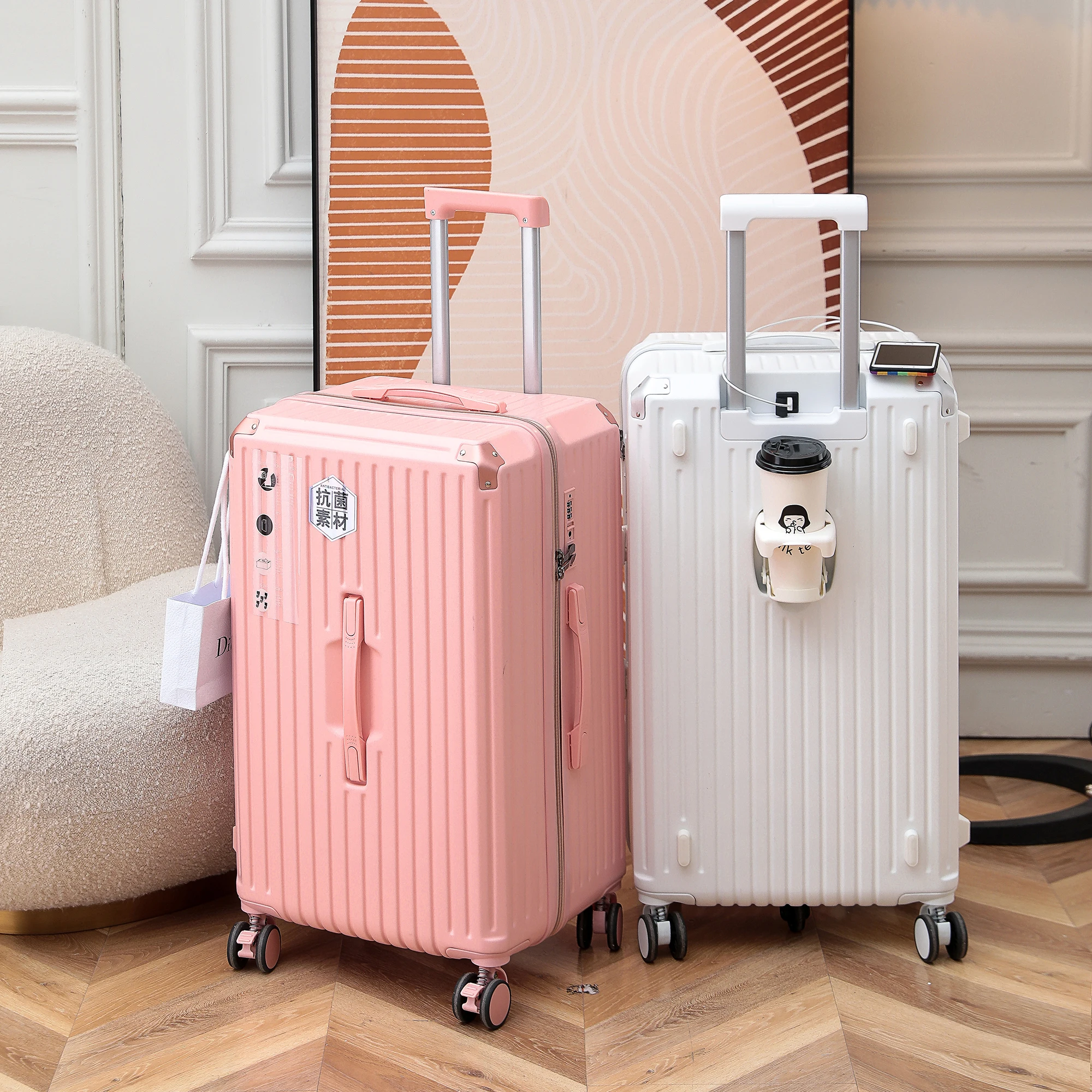 Large Capacity 20/24/26/28 Inch Female Suitcase Fashionable Classic Design Shock Absorber Brake Universal Wheel Password Luggage