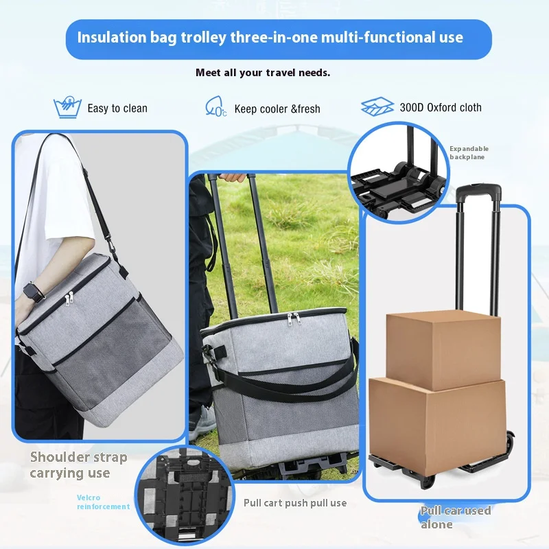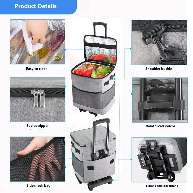 Eastshine Custom Logo Fashion-Classic PP Handheld Thermal Lunch Bag with Wheels for Outdoor Picnics Cooler Bag