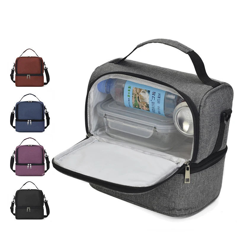Modern Fashion One Shoulder Portable Lunch Cooler Bag Double Layer Insulated Outdoor Picnic Bento Bag