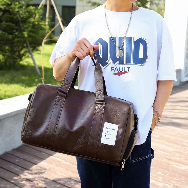 Eastshine Large Capacity Customized Logo Duffle Bags Gym Waterproof Sports Travel Mens Black PU Leather Duffel Bag