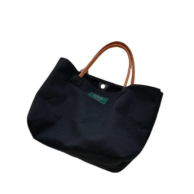 Eastshine Custom Printed logo Black Canvas Tote Bag with Pocket Standard Size Large Shoulder Bag Canvas