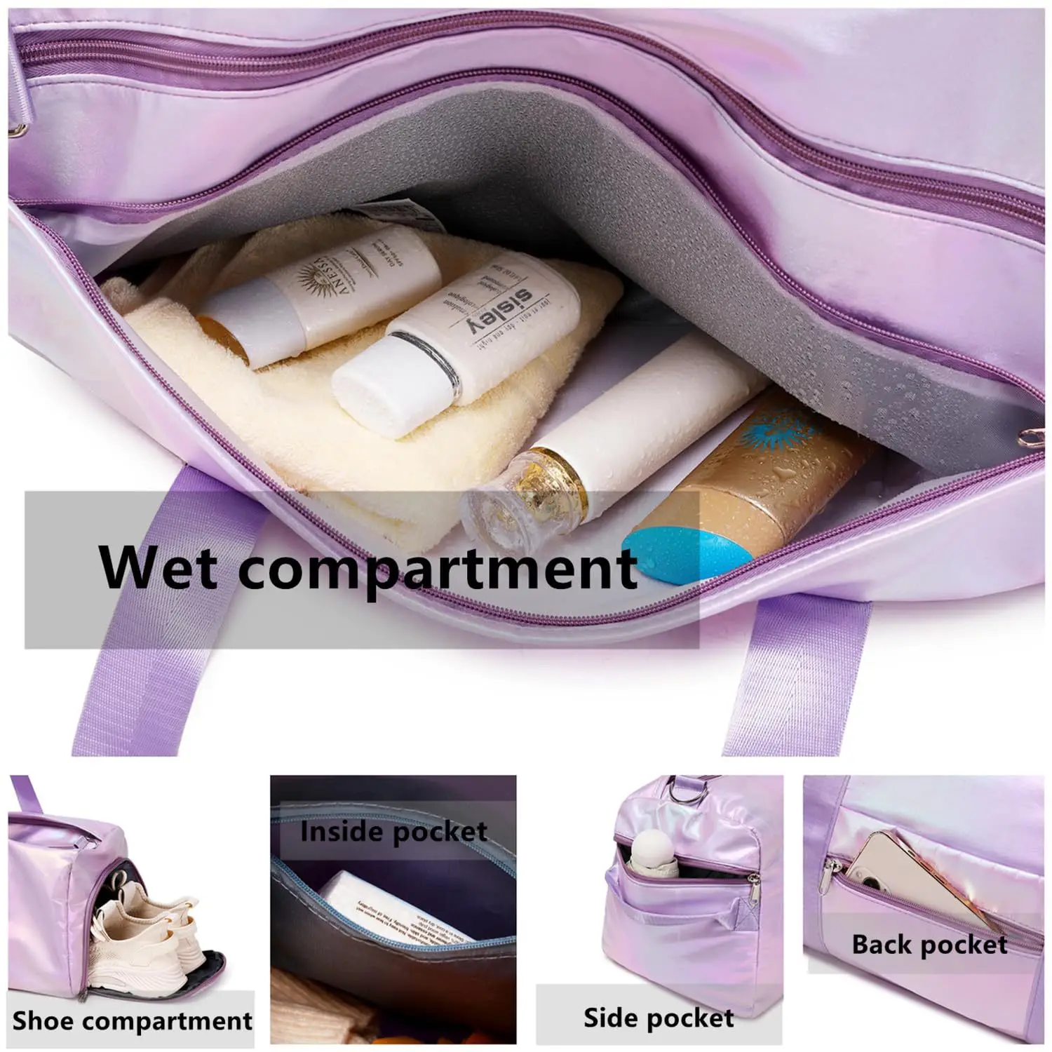 Eastshine Shiny Pink Polyester Fibre Material Gym Bag Custom Logo Travel Duffel Bag