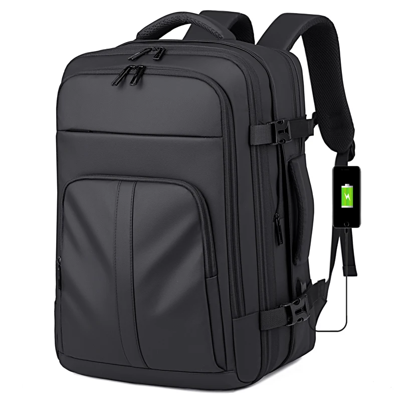 Open and Close Business Double-Shoulder Backpack for Men Casual Pure Color Large Capacity Water-Resistant Travel Laptop Bag