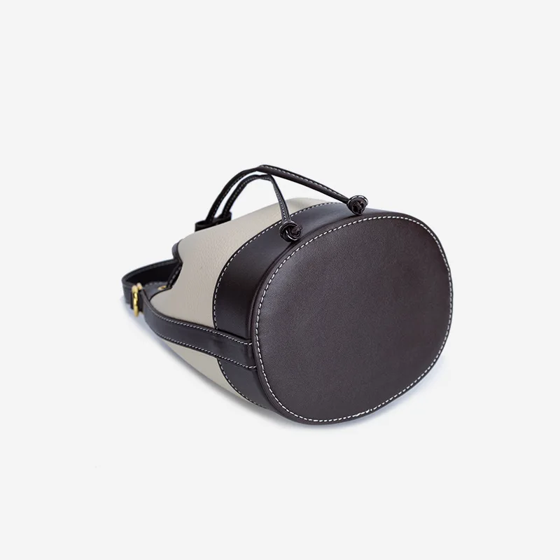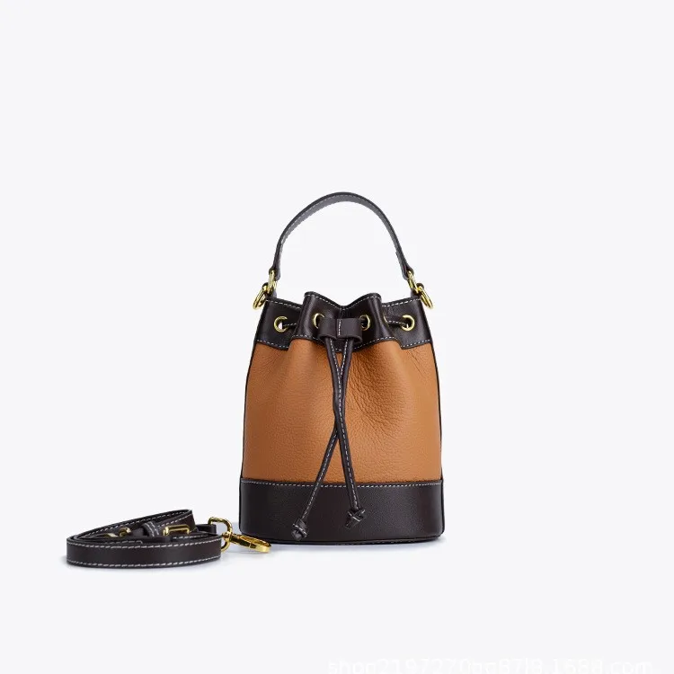 High Quality Cowhide Leather Handbag for Ladies Fashion Bucket Bag for Women Large Capacity Shoulder Crossbody Bag