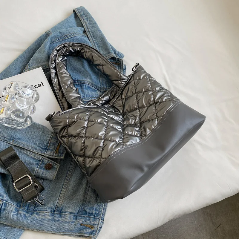 Customized Women's Puffy Quilted Shoulder Bag Puffy Shopping Bag Quilted Big Tote Carry-on Bag