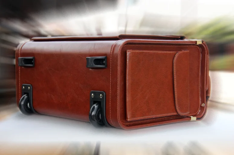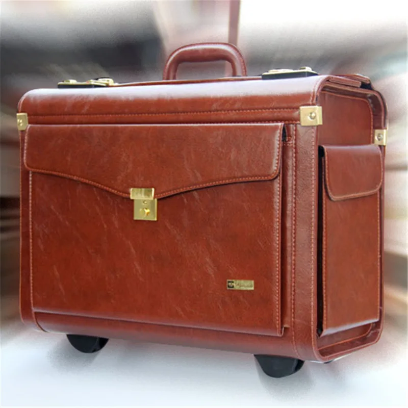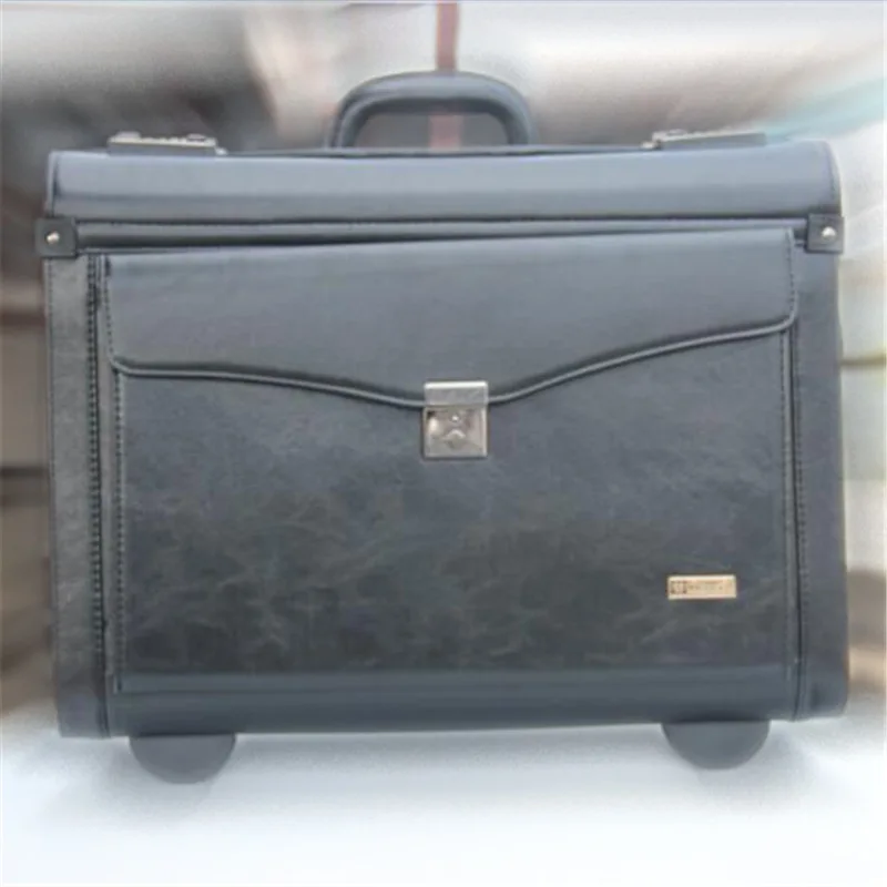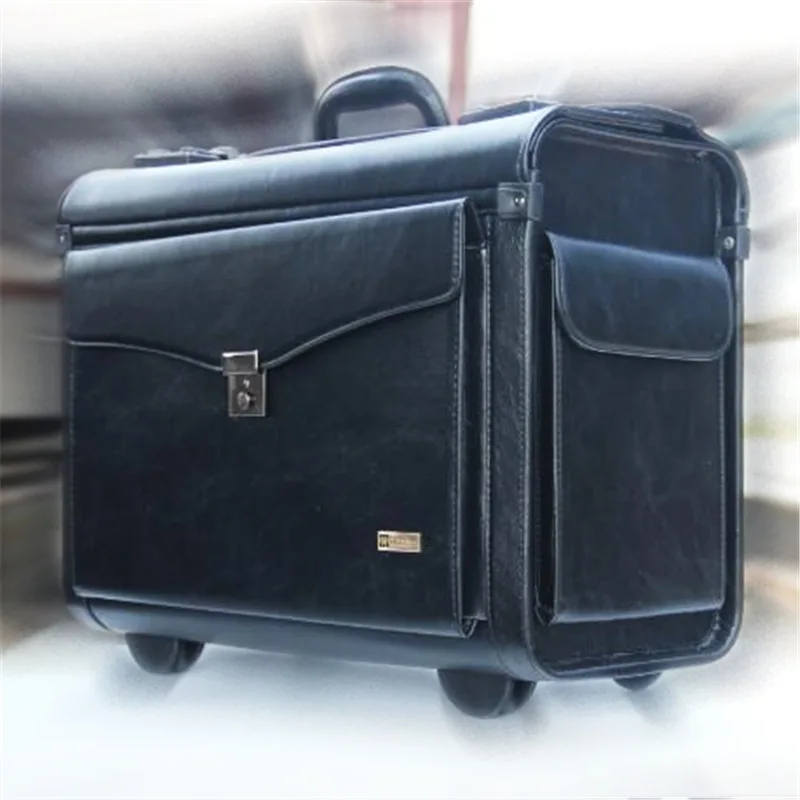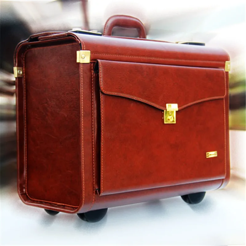 New Arrival Luxury PU Leather Suitcase 16 Inch Carry-On Trolley Luggage for Captain Stewardess Vintage Travel Boarding Suitcase
